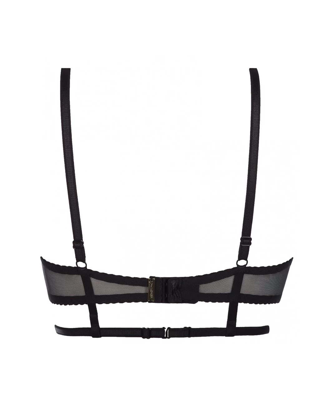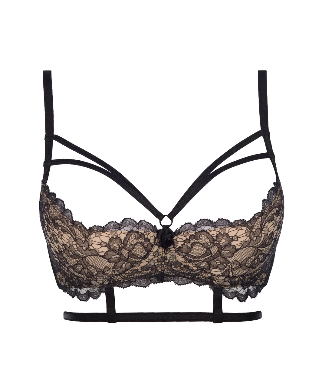 Candy Shop collection Marshmallow black, floral lace bra with supportive hoops and half cups made of thin, nude padding. The length of the straps are easily adjustable. The bra has a three-row hook clasp on the back (variable circumference).