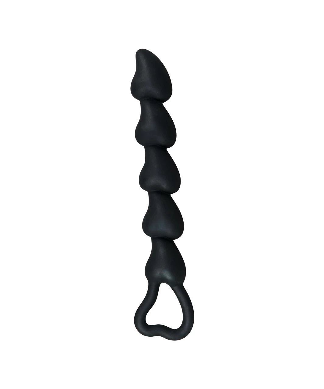 Black silky-soft and flexible anal beads with retraction loop.
