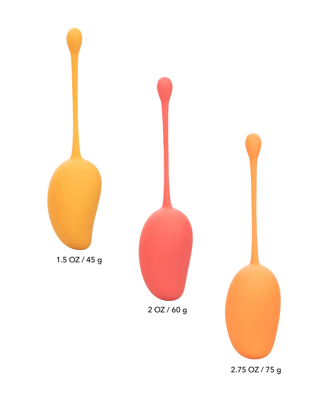 The set consists of three balls of different weight, made of silky smooth and body-friendly material. Each ball has a retrieval cord for a quick and easy removal. They should be used one by one, starting with the lightest ball. Lightweight ball will compliment the pelvic floor muscle training. If you have learned the proper breathing technique for a diaphragm workout and started to improve the strength of pelvic floor muscles, lighter ball will help you reach the next strength level – to strengthen and stimulate the vaginal muscles. Keep those muscles toned to enjoy more exciting sensations during sex.