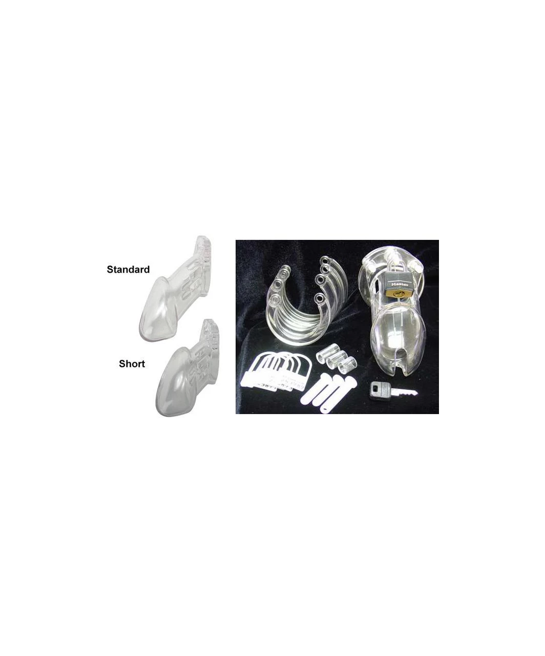 • Package includes: 1 cage portion; 5 different size rings; Locking pins and spacers; One brass padlock; Five individually numbered plastic locks