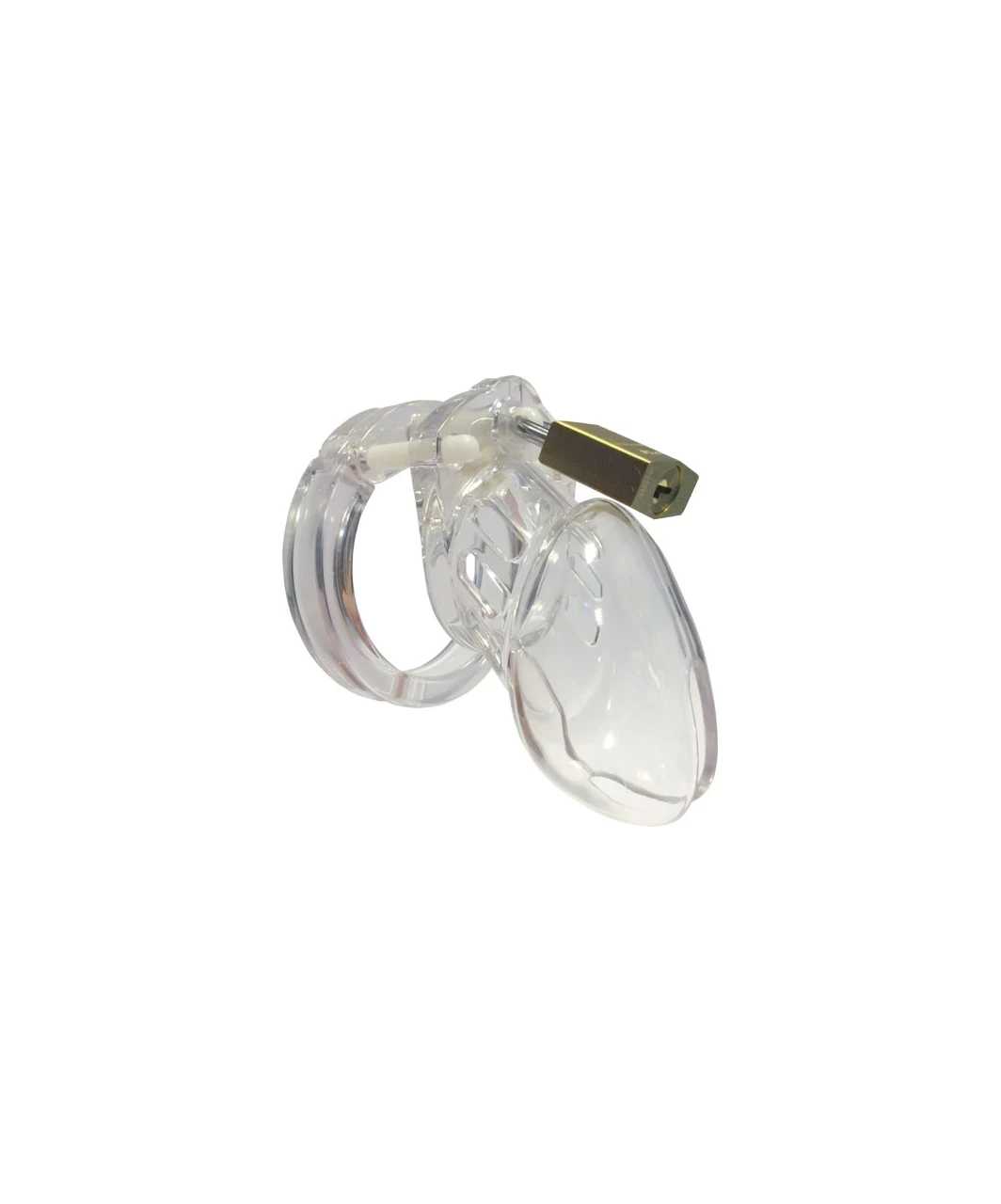 The CB-6000S Male Chastity Device is a new innovative design offering the utmost in comfort and security. The CB-6000S Male Chastity Device offers the utmost in comfort and security. The ring design consists of three interlocking pieces that fit together like a puzzle. The two guide pins hold the top pieces together. The oval locking pin goes through the middle recessed hole connecting the cage portion to the ring. The flat design of the rings is extremely comfortable and secure. The CB-6000S is made of medical grade polycarbonate material. It is lightweight, hypoallergenic and durable. The cage portion is vented for hygiene and has a bottom opening allowing use at urinals. The different size rings and spacers included in each package allow you to customize your fit to your individual needs. The CB-6000S restricts you from touching your genitals for sexual pleasure and gives the Keyholder control over the sexual fulfillment of both partners.