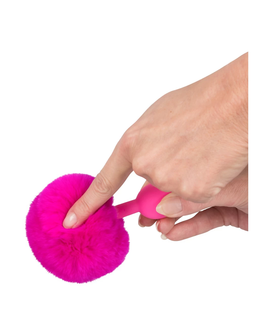 Teardrop-shaped pink butt plug with a bunny’s tail that’s made out of pink fake fur. Complete length 13 cm, insertion depth: 6 cm, plug Ø 2.8 cm. Material: Silicone, phthalate-free according to EU regulation REACH. With artificial fur.