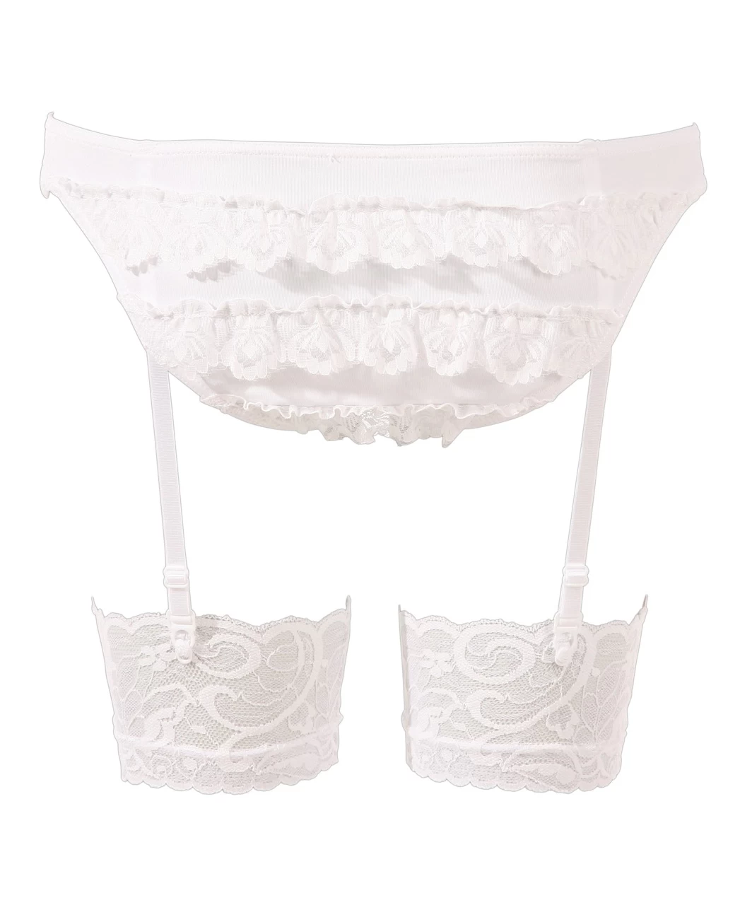Short shirt to bend. Pleated skirt with exciting bottom-cutout, sweet frill-brief with adjustable suspenders. Zip in the back. Incl. tie and stockings.