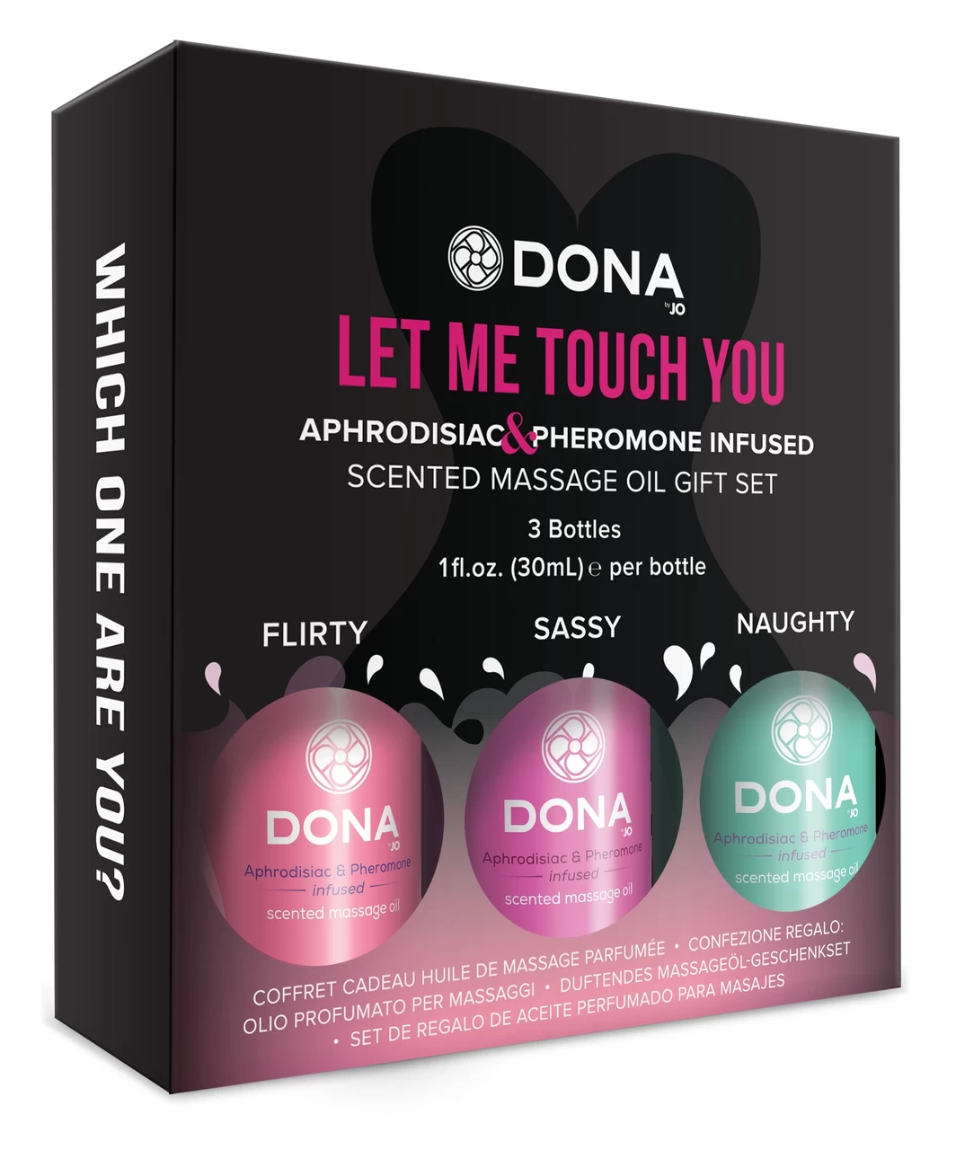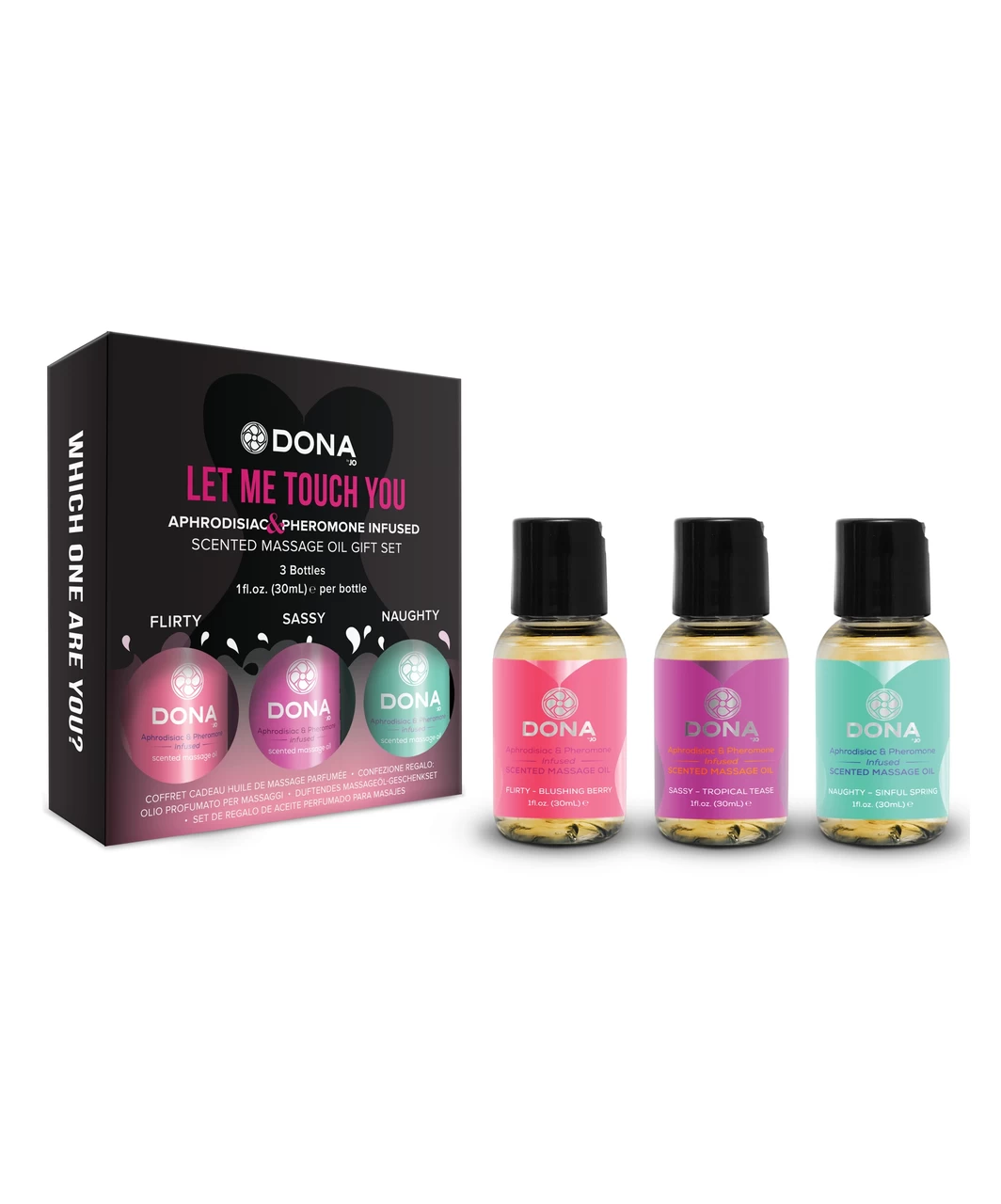 Entrance your lover with the DONA Scented Massage Oil Gift Set. In 3 indulgent fragrances to suit all your moods, DONA Scented Massage Oil is infused with aphrodisiacs and pheromones to ignite your desire for one another while relaxing away tension. Be irresistible to the touch as you melt into aromatic bliss.