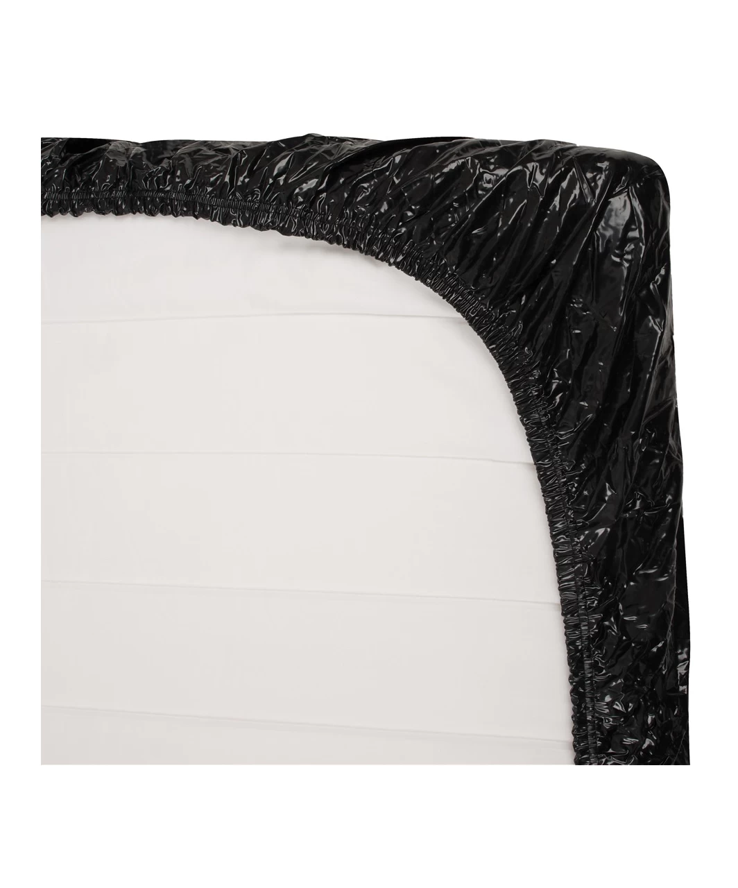 Black vinyl fitted bed sheet for your fetish dreams. Fringed with stretch on the sides for a secure grip on the mattress. Suitable for mattresses with dimensions up to 2 x 2 m. Do not machine-wash, clean with damp cloth and lukewarm soapy water. Size: 220 x 220 cm. Material: PVC.