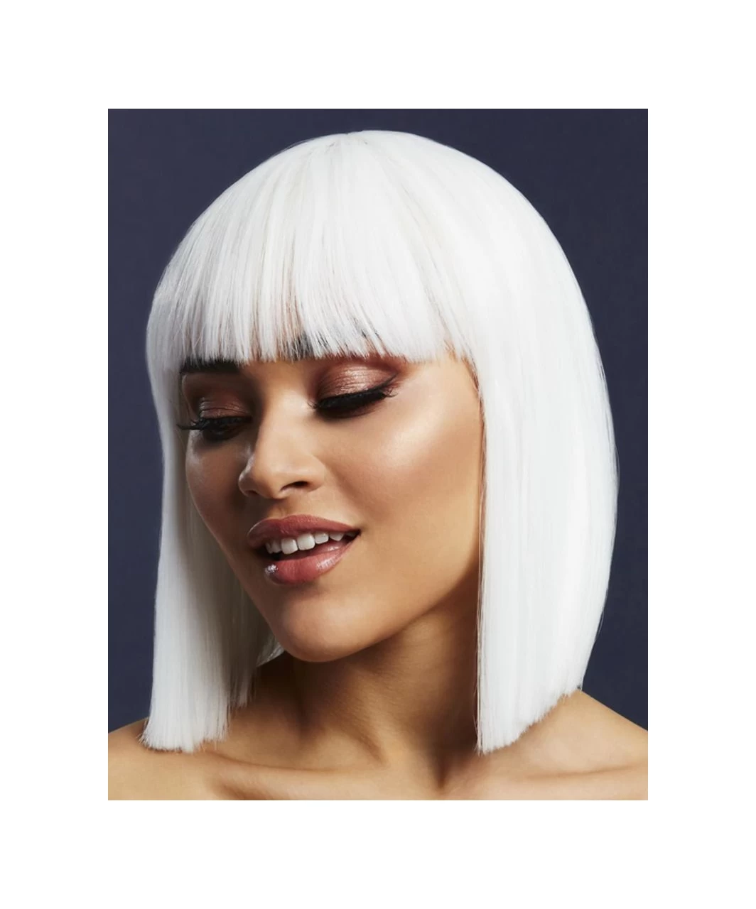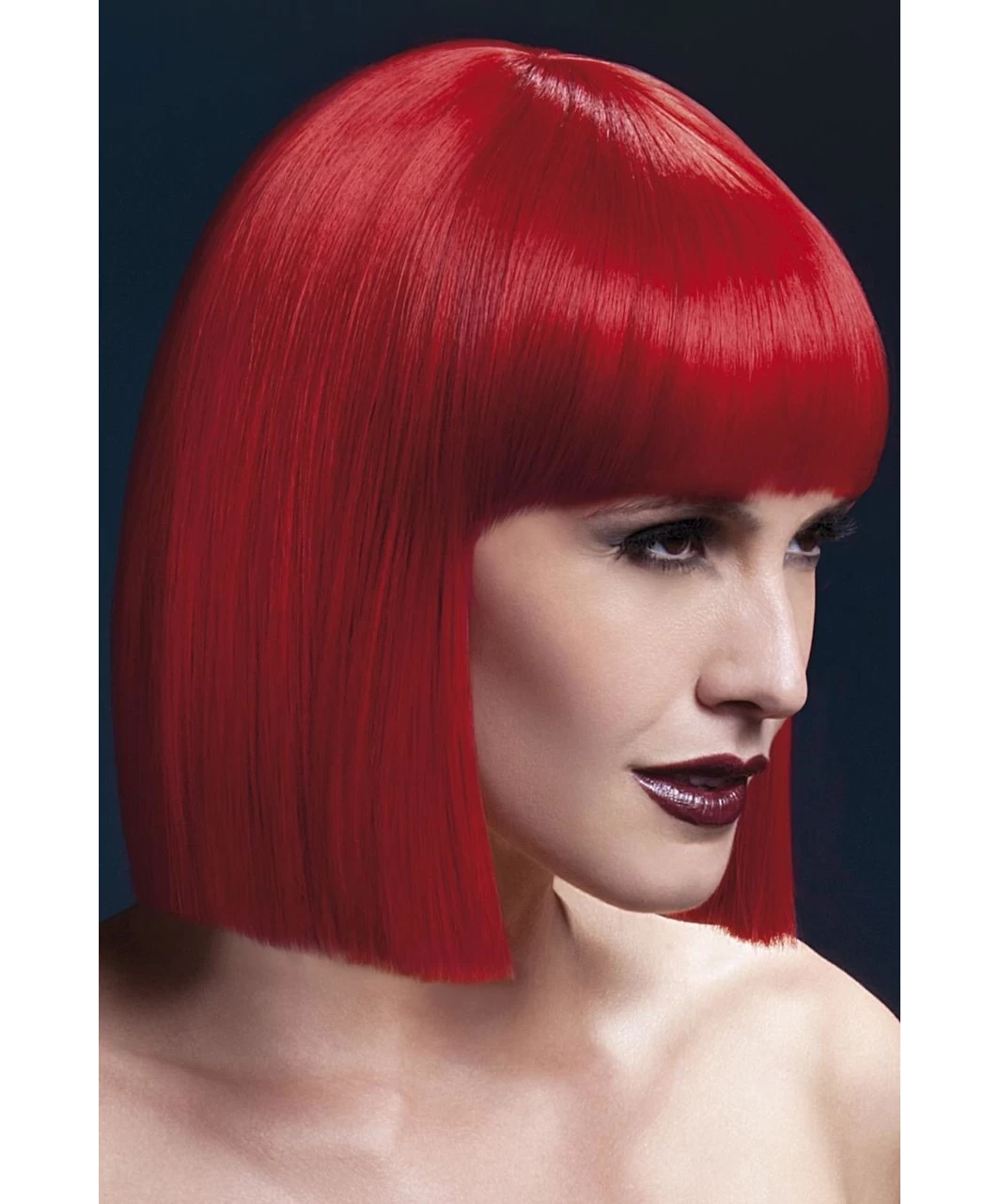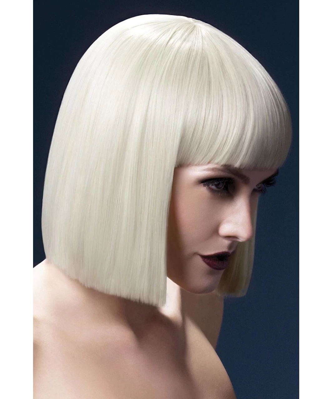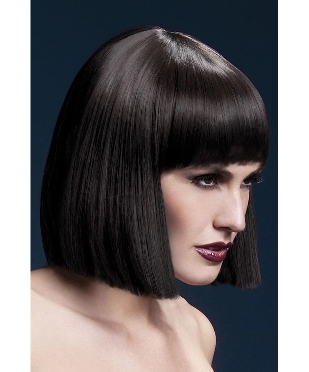 Short (30 cm), blunt cut bob with straight fringe. Professional quality synthetic wig that is made from heat resistant material and is heated styling tool compatible.