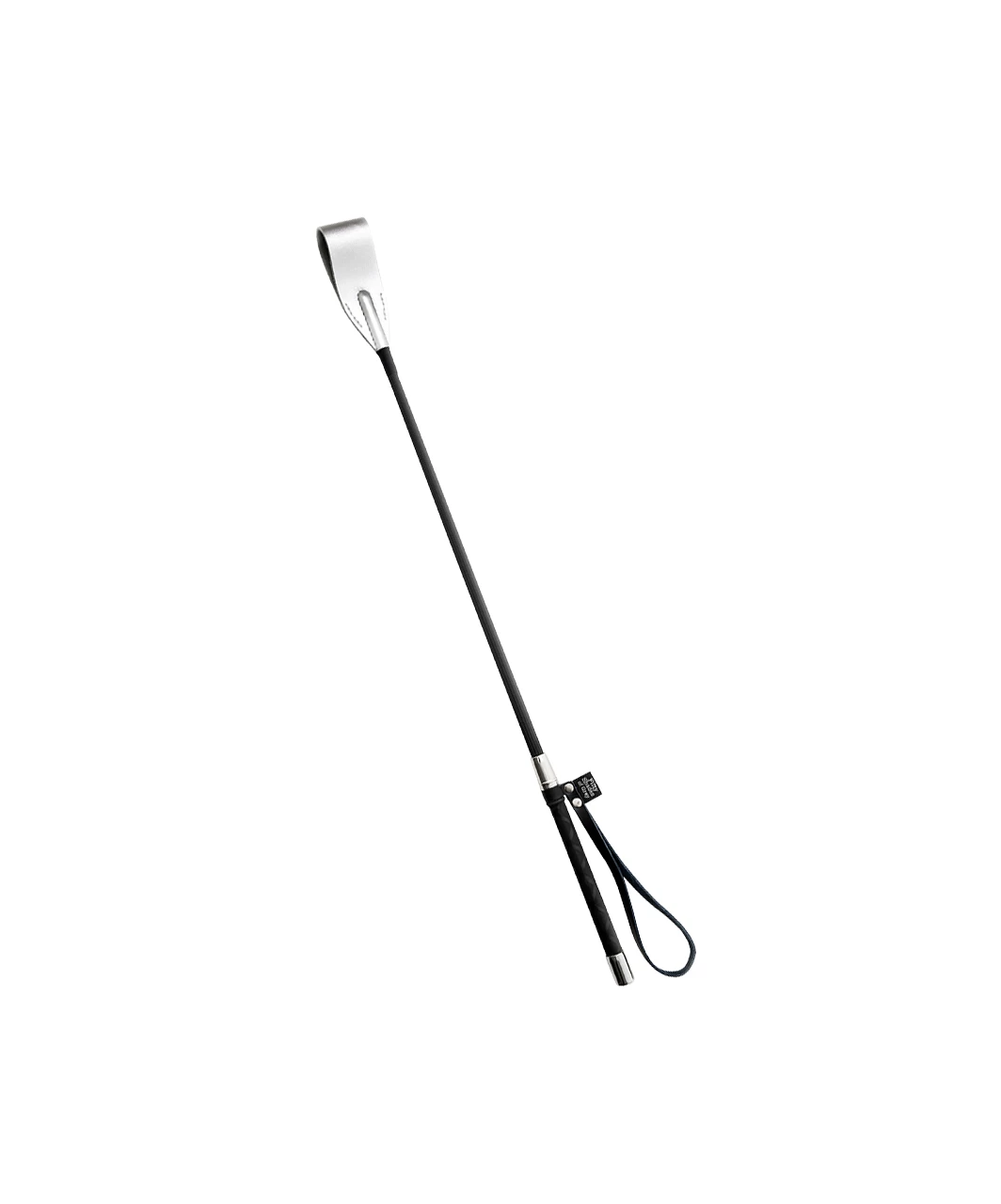 Riding crop of the official Fifty Shades of Grey Pleasure Collection. Punish your partner and enjoy a little naughty spanking with this flexible and strong Riding Crop. Designed to give a satisfying thwack that leaves a delicious sting on your lover?s bottom, enjoy the excitement that this sleek and effective bondage accessory brings to your bedroom play. Black handle, grey tip. Length 60 cm. Material: leather, PVC, nylon, EVA.