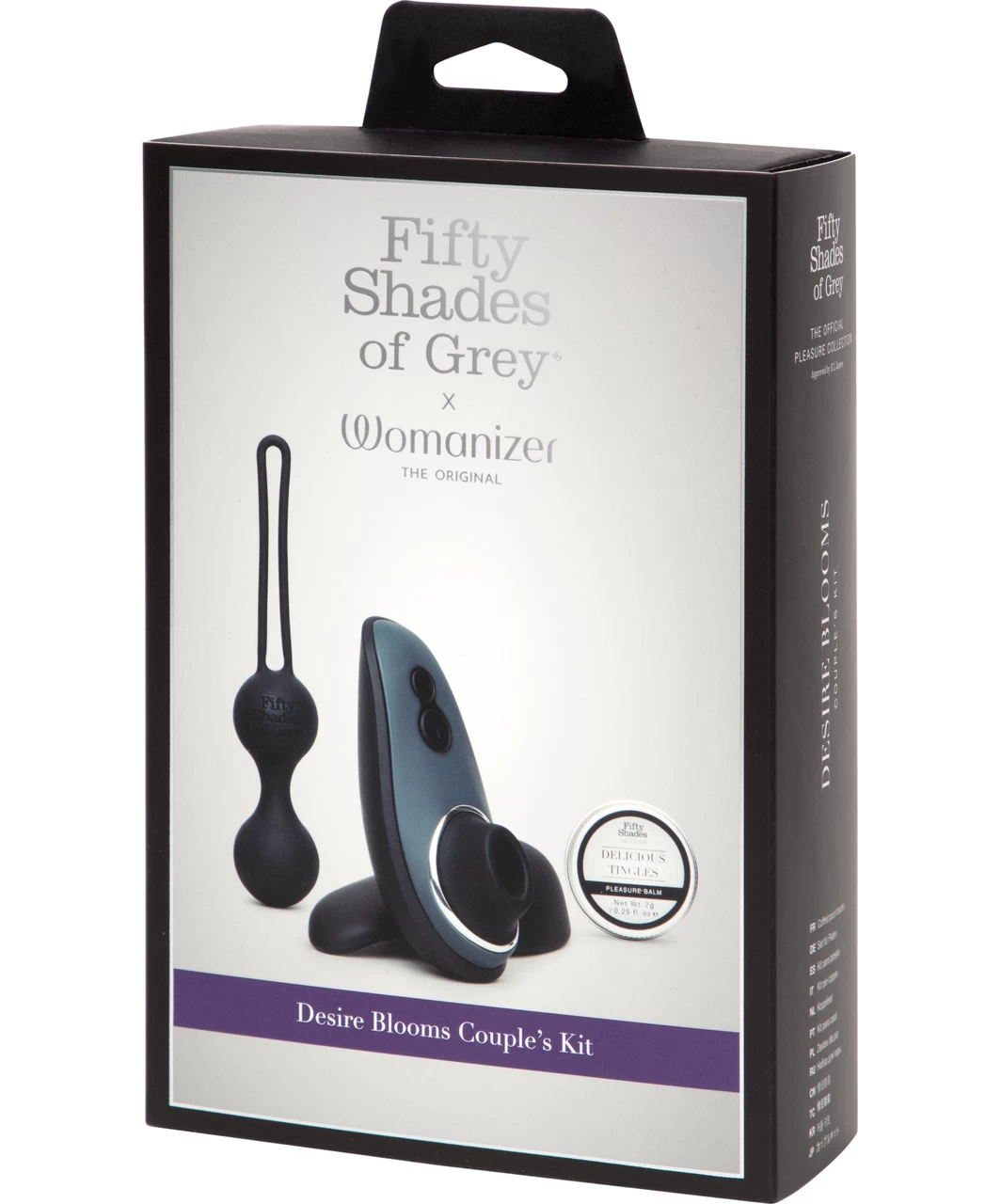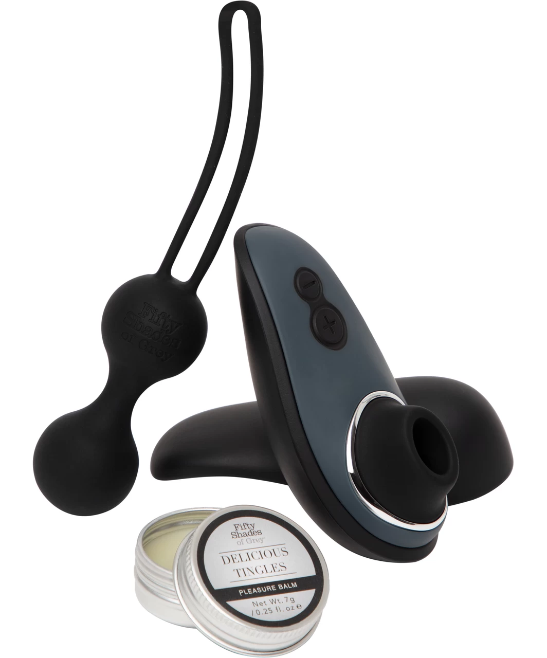 The set includes the popular Womanizer Liberty, Fifty Shades of Gray love balls and an intimate stimulating balm with menthol – for the use on the clitoris, nipples or the tip of the penis.