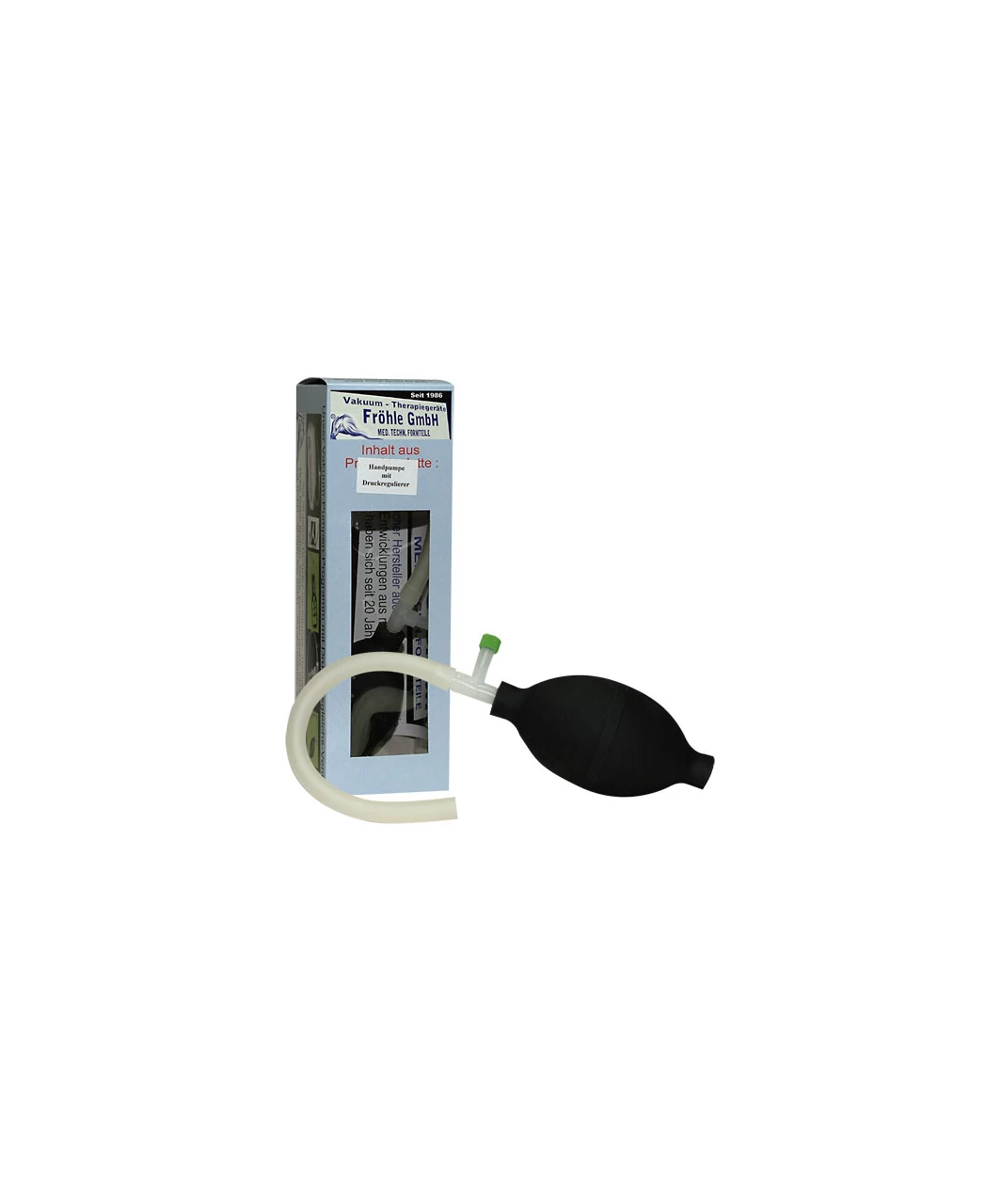 Accessory for pump items from Fröhle. Ball pump with hose and pressure regulator. Creates approx. 250 Mbar vacuum. Medico-technical examined and protected by the patent office. Material: ABS/PVC.
