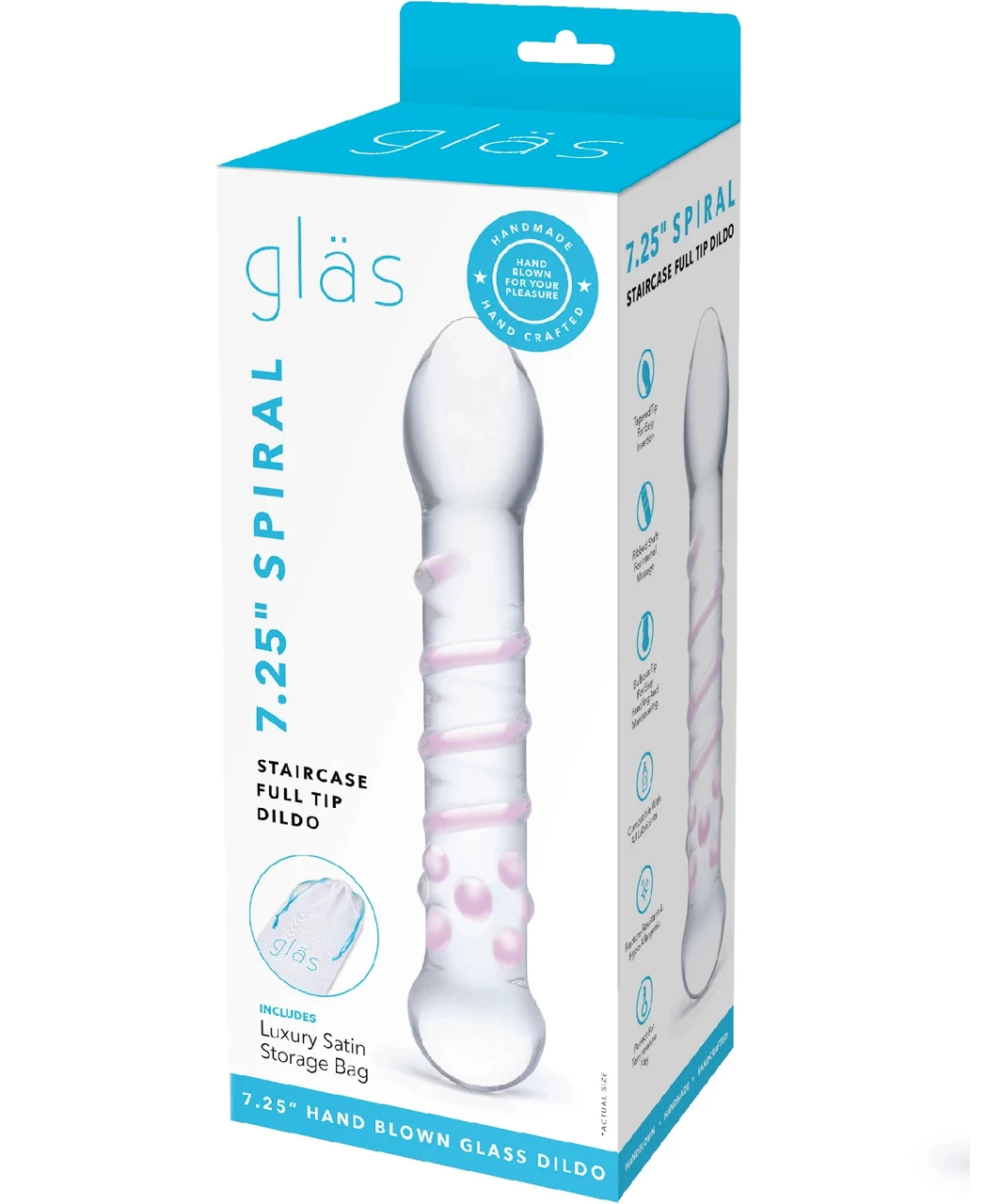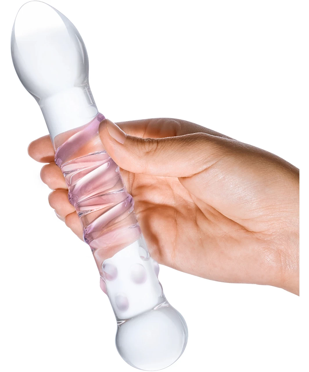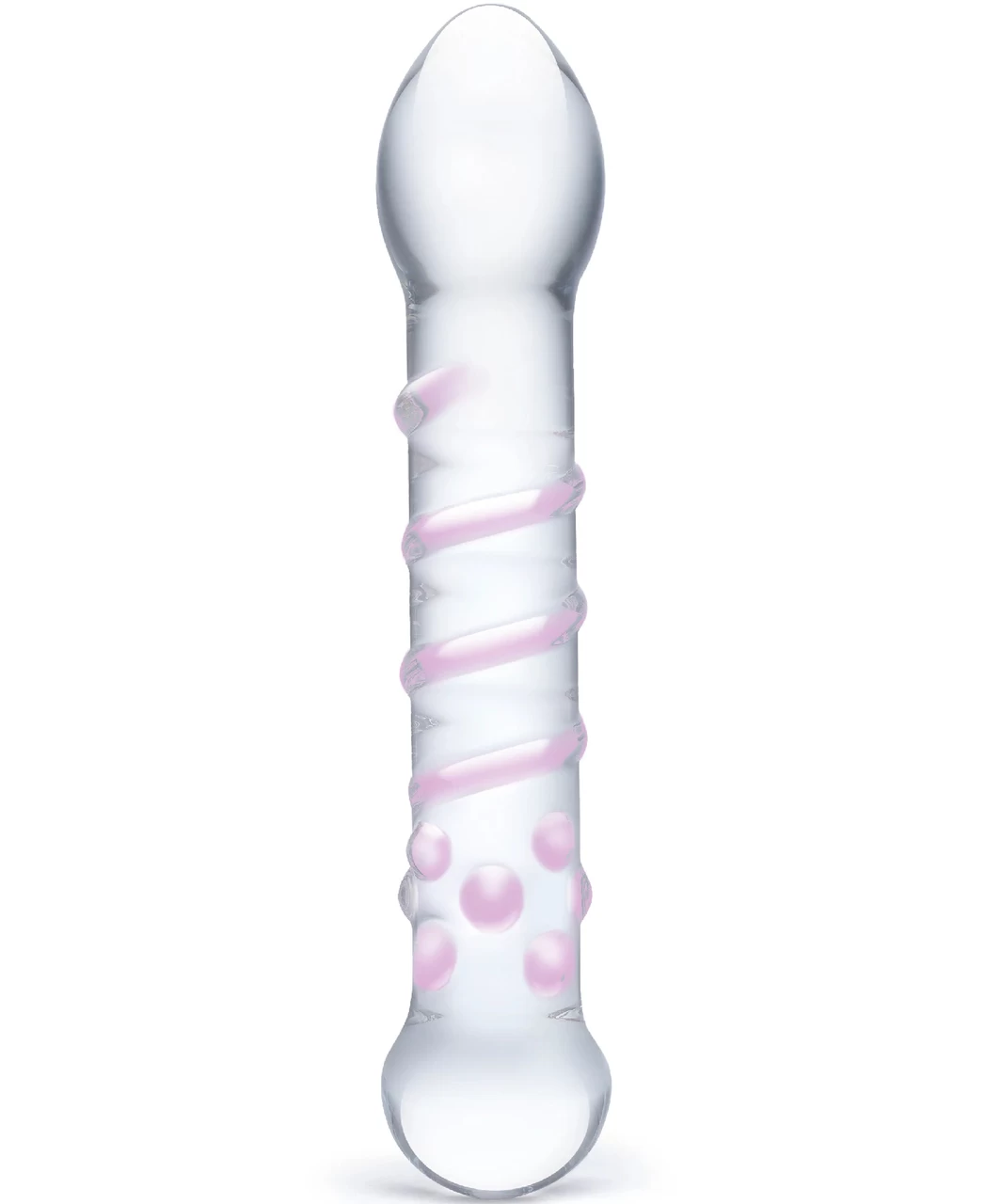 Explore your erotic creativity with this versatile, artistically crafted glass dildo. Use the bulbous head for deep stimulation, or the nubby end for G-spot massage. The spiral shaft ensures a ecstatic experience no matter how you use it.