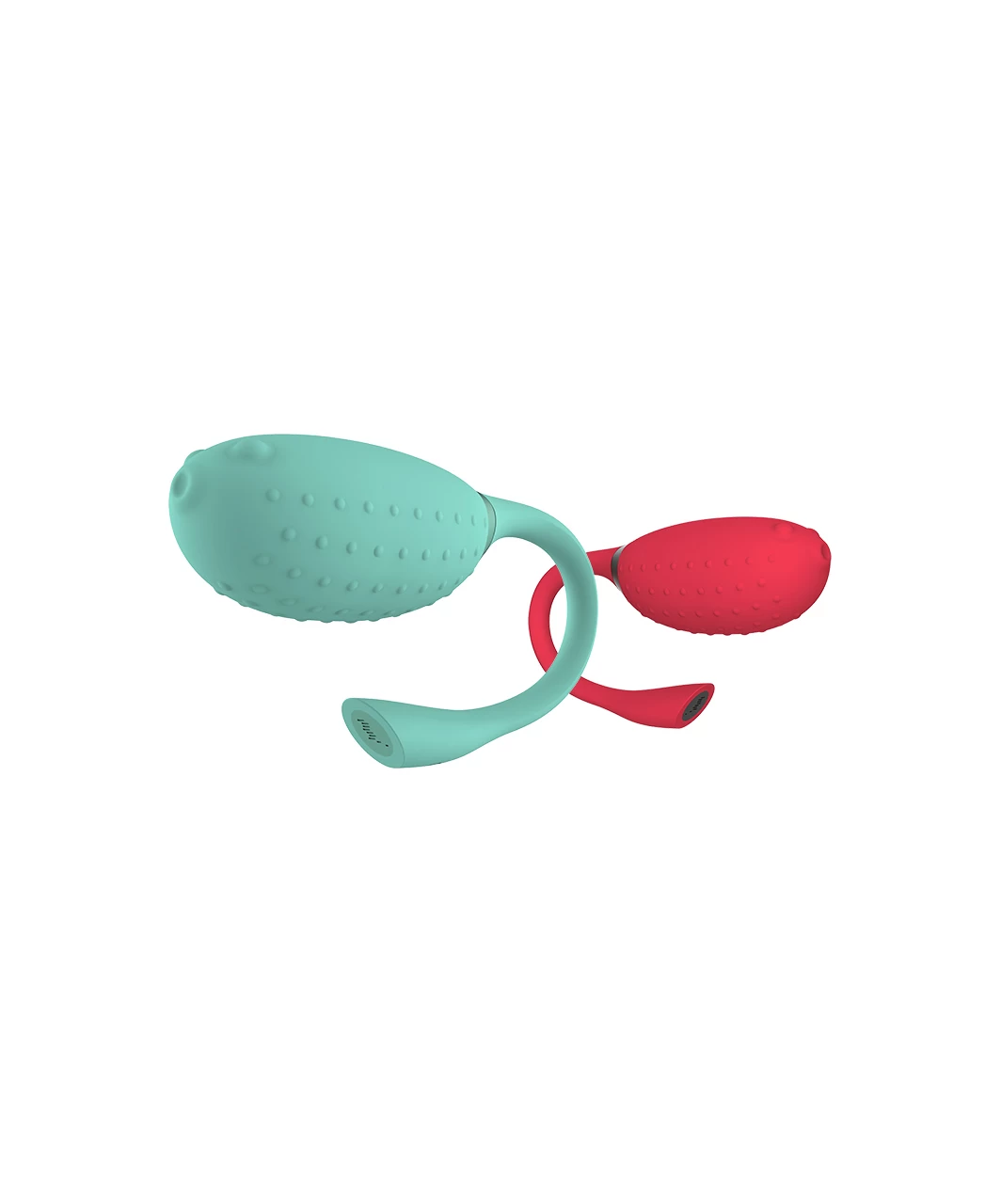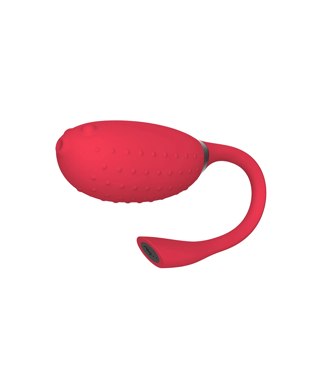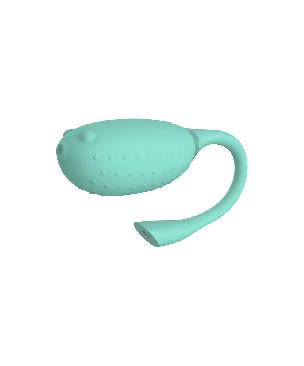 Oval fish-shaped firm plastic wearable vibrator covered in smooth silicone with dotted relief. Smartphone app controlled: music, game, voice, preset and costumized vibration patterns.