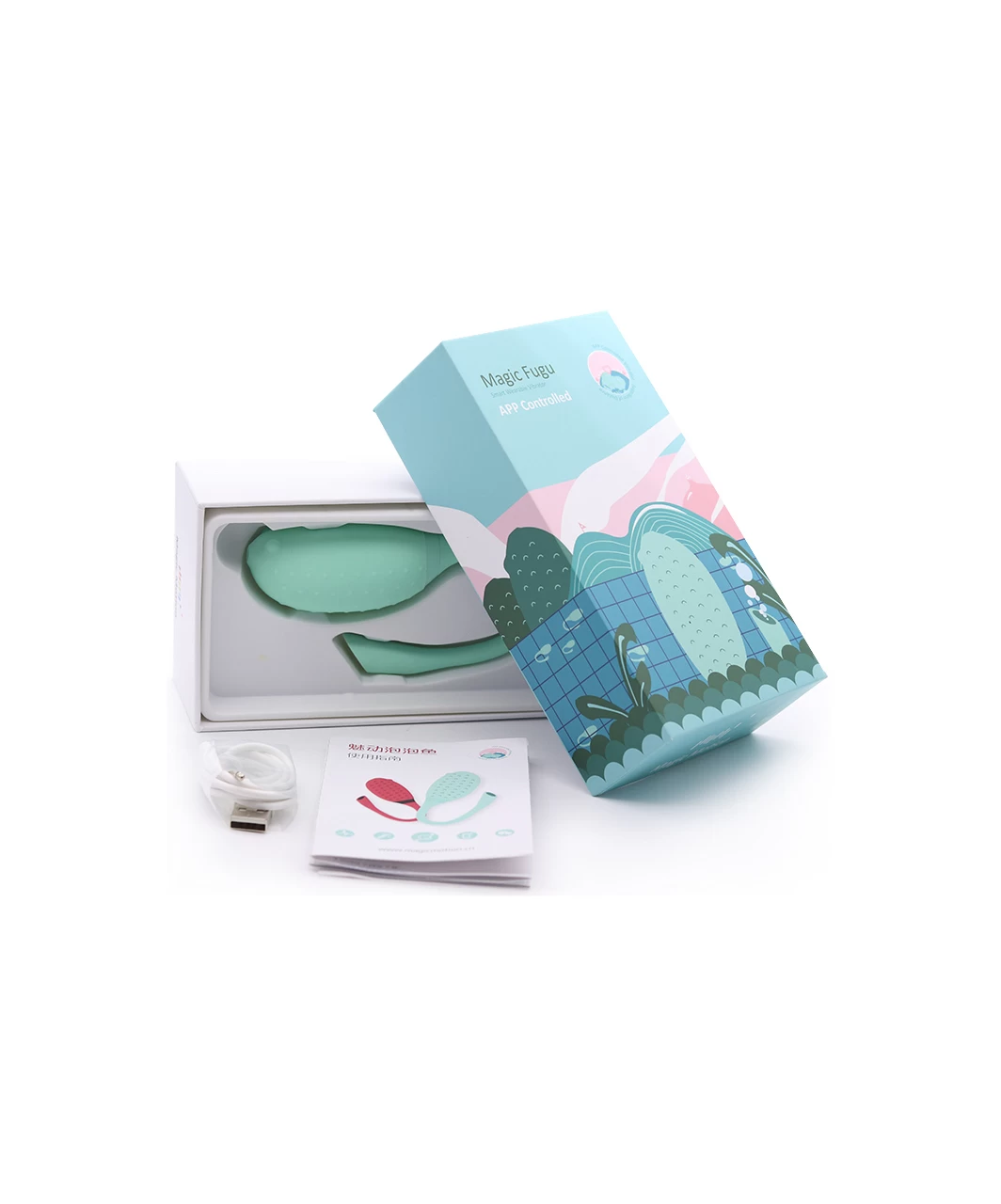 Turn on the Magic Fugu by pressing the control button and then push the button to select vibration from 3 intensities and 4 rhythms. The vibrator will turn off after holding control button for 3 seconds.