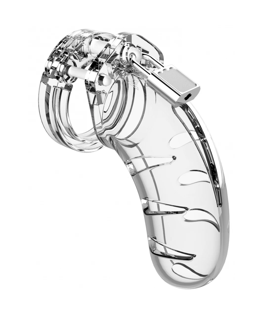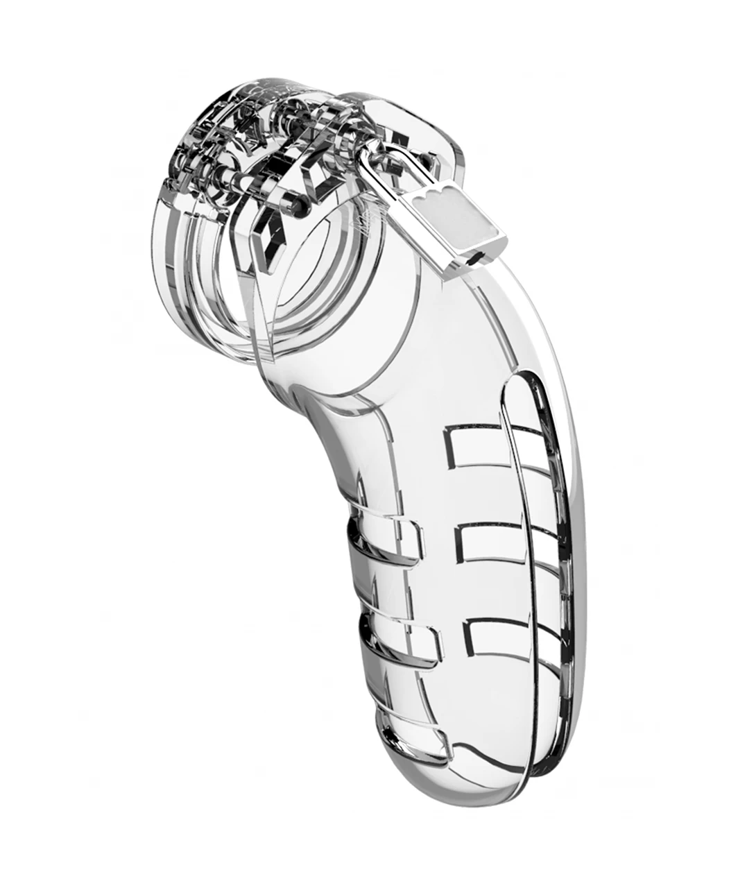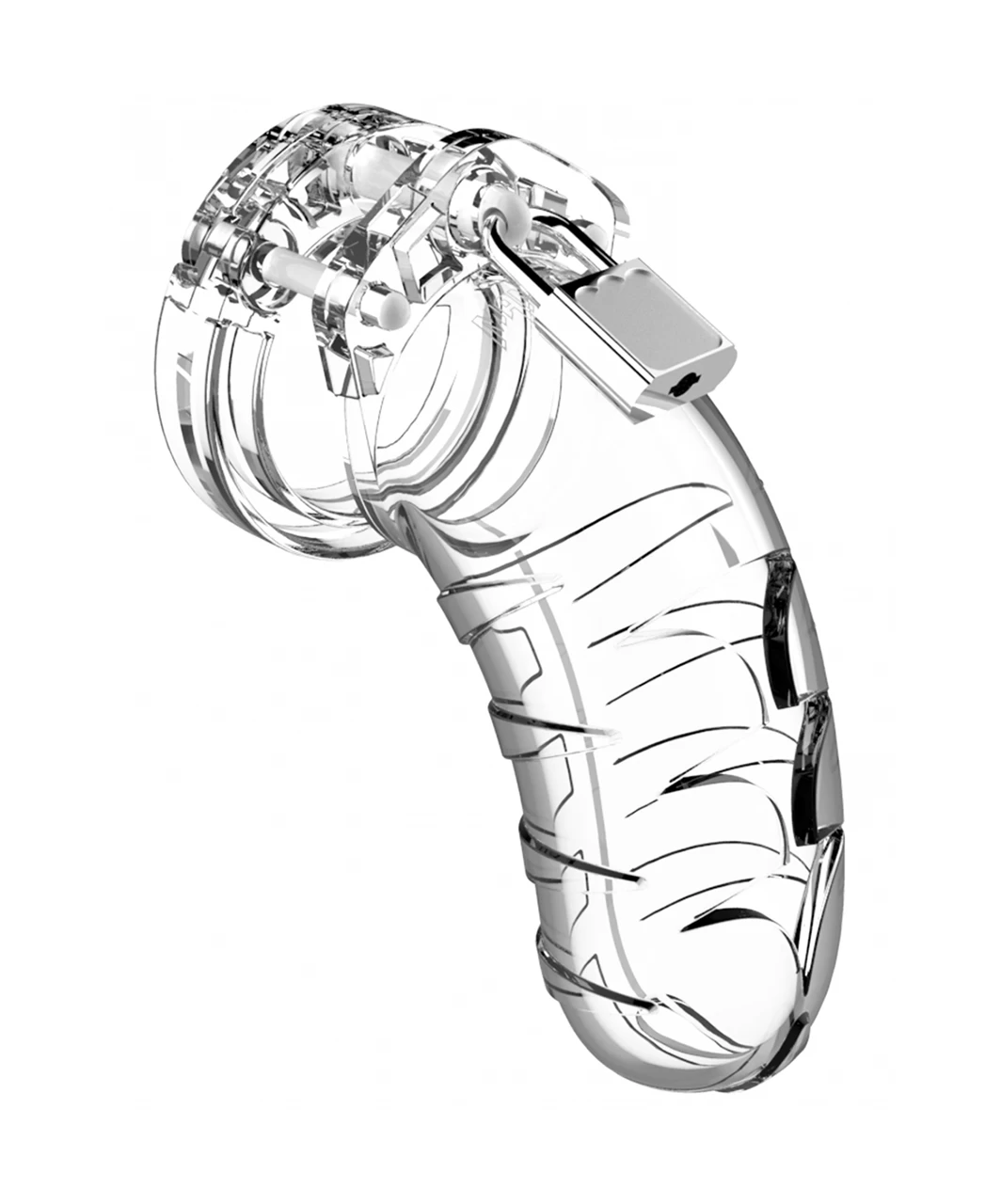 The ManCage Chastity Cages are manufactured from high-grade polycarbonate, a very light, durable and hypoallergenic material. The cage consists of three parts which fit perfectly together. The two guidance pins connect the top parts and the oval taper pin connects the rings with the cage. A variety of rings in different sizes and distance pieces will allow you to create the perfect size! The rings have a comfortable fit and are absolutely safe. A metal lock or tie-wrap lock can easily close the cage. The included tie-wrap locks ensure that they will not trigger the alarm of metal detectors at parties, festivals or even airports! As hygiene is very important while wearing a cage, the superior ManCage series are equipped with a variety of vents and a urination opening. The cage makes it impossible to get an erection but it will be, after liberation, super intense, just like the freeing orgasm to follow! The ManCage Chastity Cage gives the key-holder optimal power over sexual gratification!