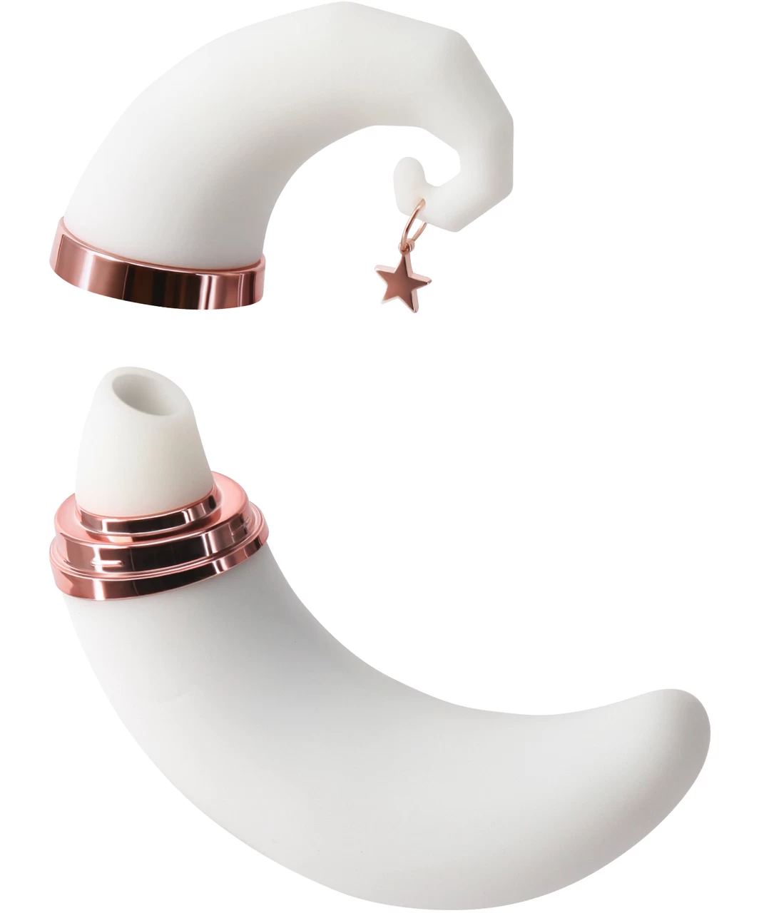 Balts, tumsā spīdošs (ja kādu laiku atstāts gaismas avota tuvumā) stimulators mēnestiņa veidolā – vibrators vienā galā un stimulators ar bezpieskāriena Air Pulse tehnoloģiju otrā galā. Šī rotaļlieta ar dažādas intensitātes gaisa viļņiem ļaus sasniegt orgasmu dažās minūtēs. Gaisa plūsma un vibrācija darbojas atsevišķi. Baudi 10 gaisa plūsmas intensitātes vai 10 vibrācijas veidus – arī vannā vai dušā, jo rotaļlieta ir pilnībā ūdensizturīga.
