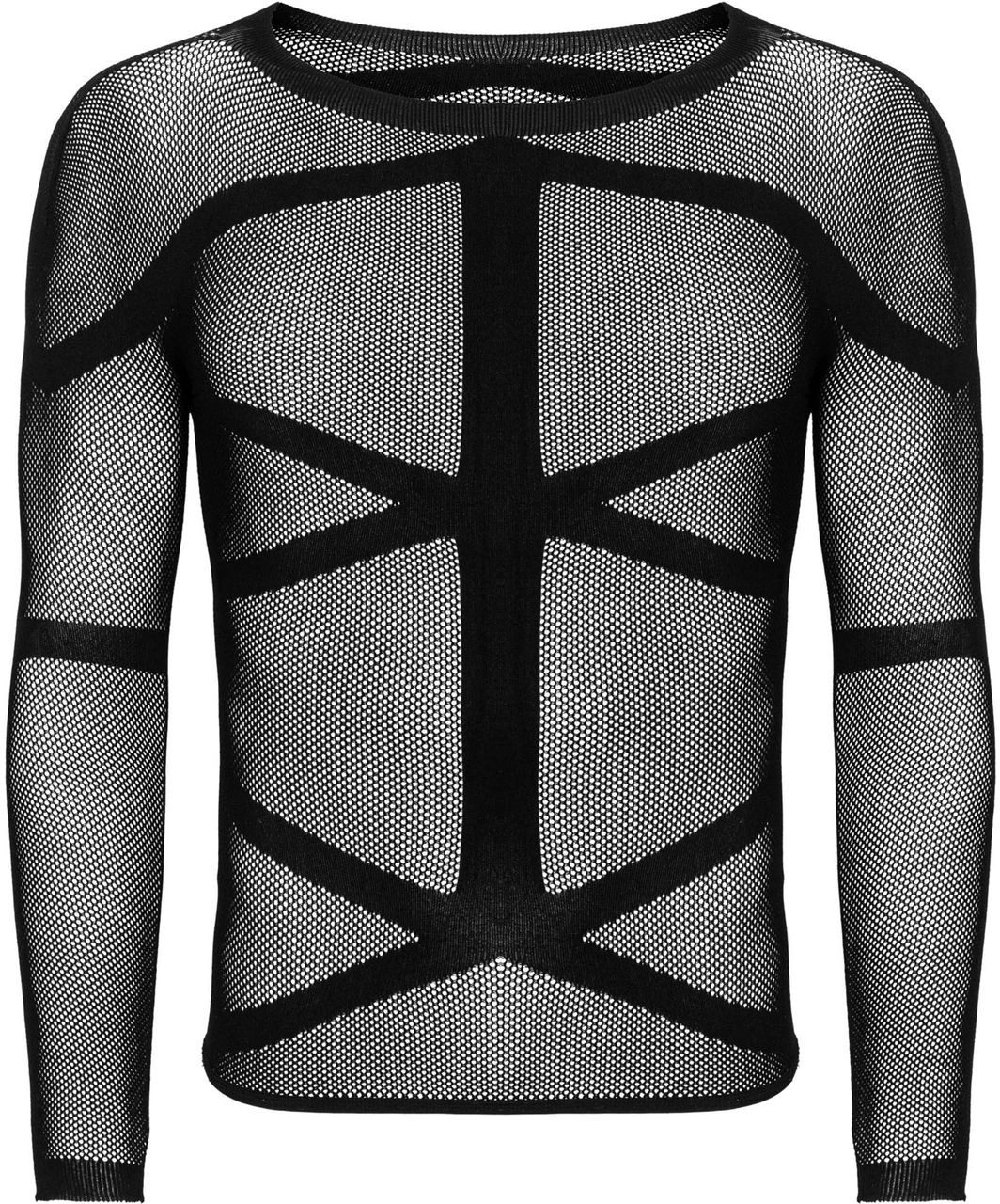 Black, elastic knit long sleeved shirt with a geometric pattern. Unisize (S–L).