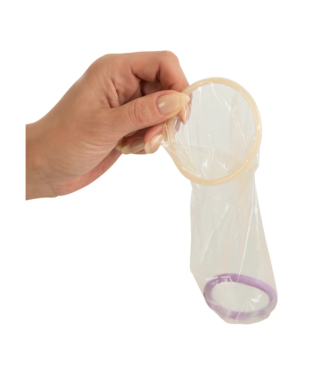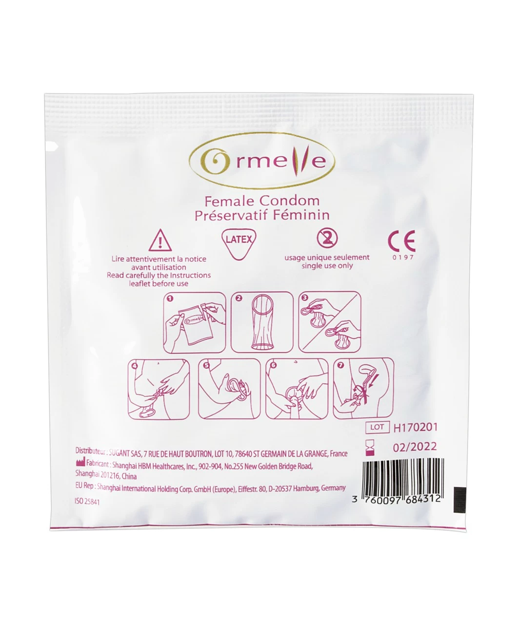Unlike male condoms, female condoms do not restrict the male penis, but are spread in the vagina, providing quality protection and more opportunities for comfortable sex. The transparent lubricated female condom is made of a latex pouch that has an integrated, outer round edge and an elastic plastic ring at the other end, which makes sure that the pouch stays in the vagina. Female condoms should be used with water or silicone based lubricants. Includes illustrated instruction manual.