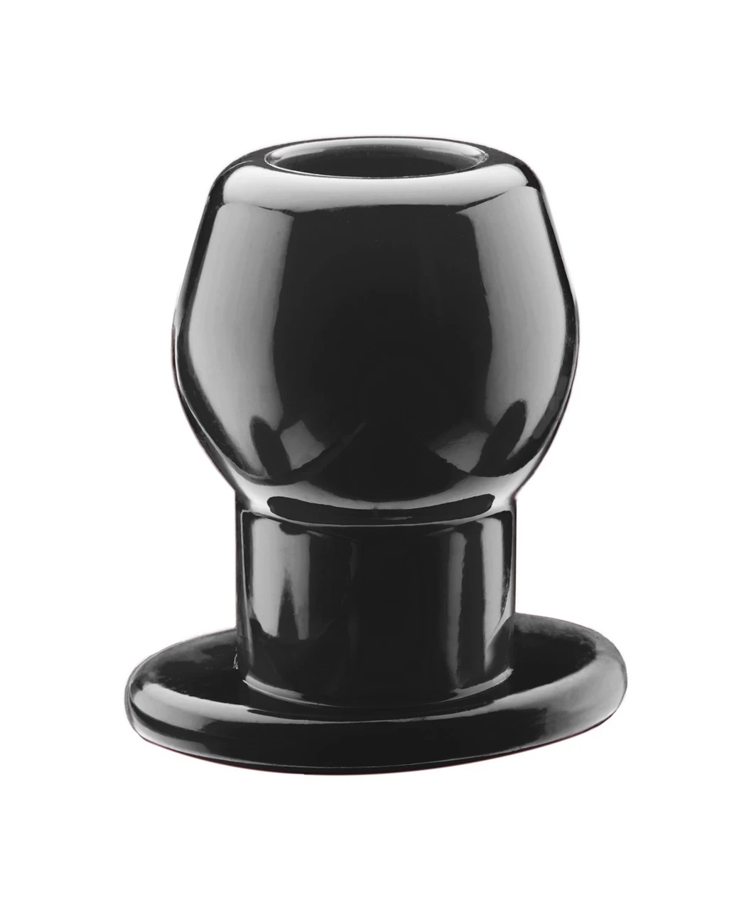 Black hollow anal plug. Instead of just plugging someone’s butt, you can open it and use the incredible tunnel hole that goes all the way through the plug. Besides the unbelievable sensation, you are actually able to see right into it. Use your imagination and go wild, or easily insert fingers or lube right through the plug. This is the most innovative play toy that had become available in years. It is made of special blend of silicone and TPR called PF Blend. It is safe with water based lubes. Wash thoroughly with mild soap and water. This product is not compatible with latex.