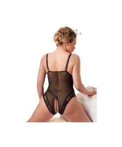 Cottelli Lingerie Black Matte Look & Lace Crotchless Suspender Set