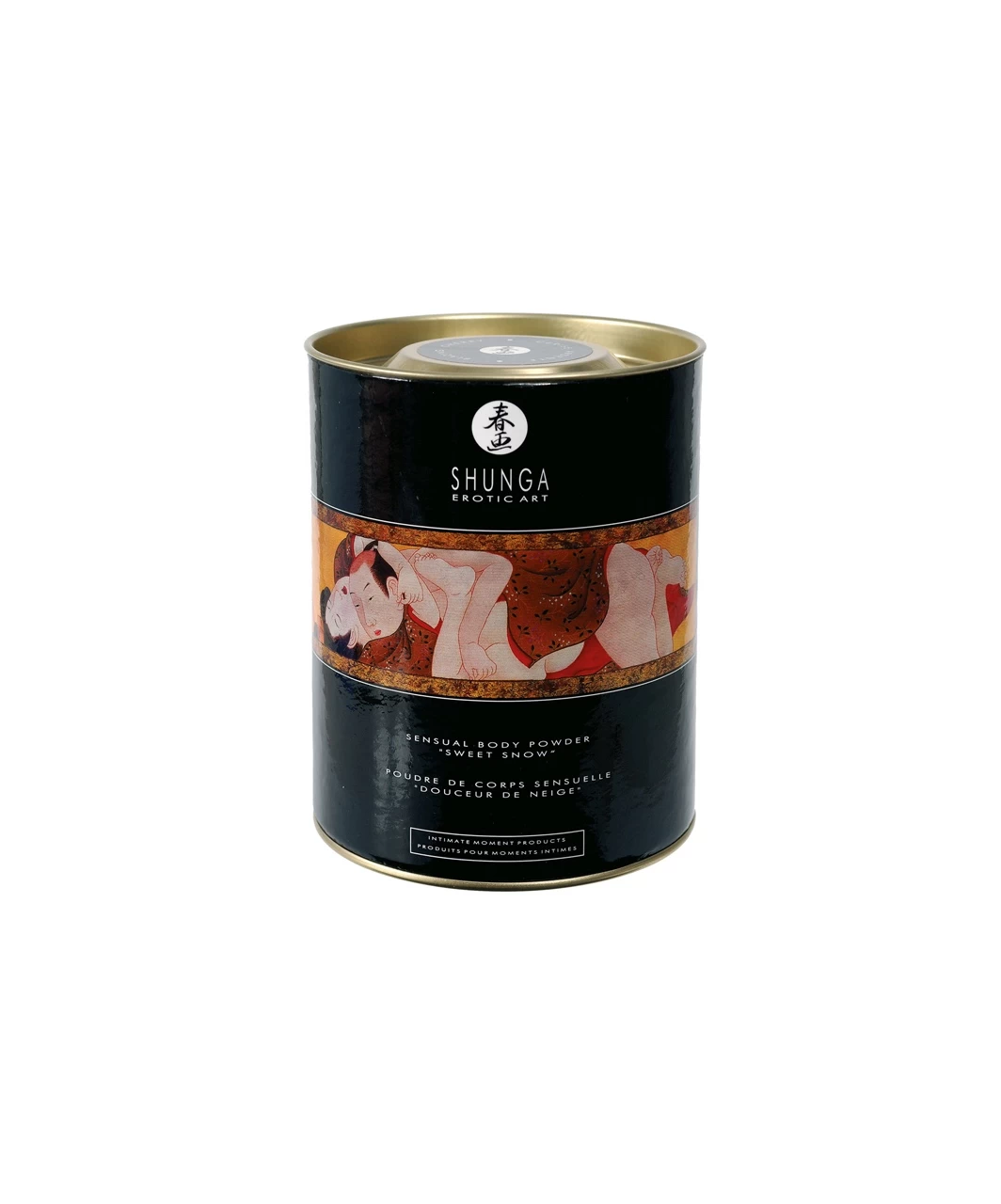 Each box contains a satin bag with an edible body powder and a handmade feather brush.