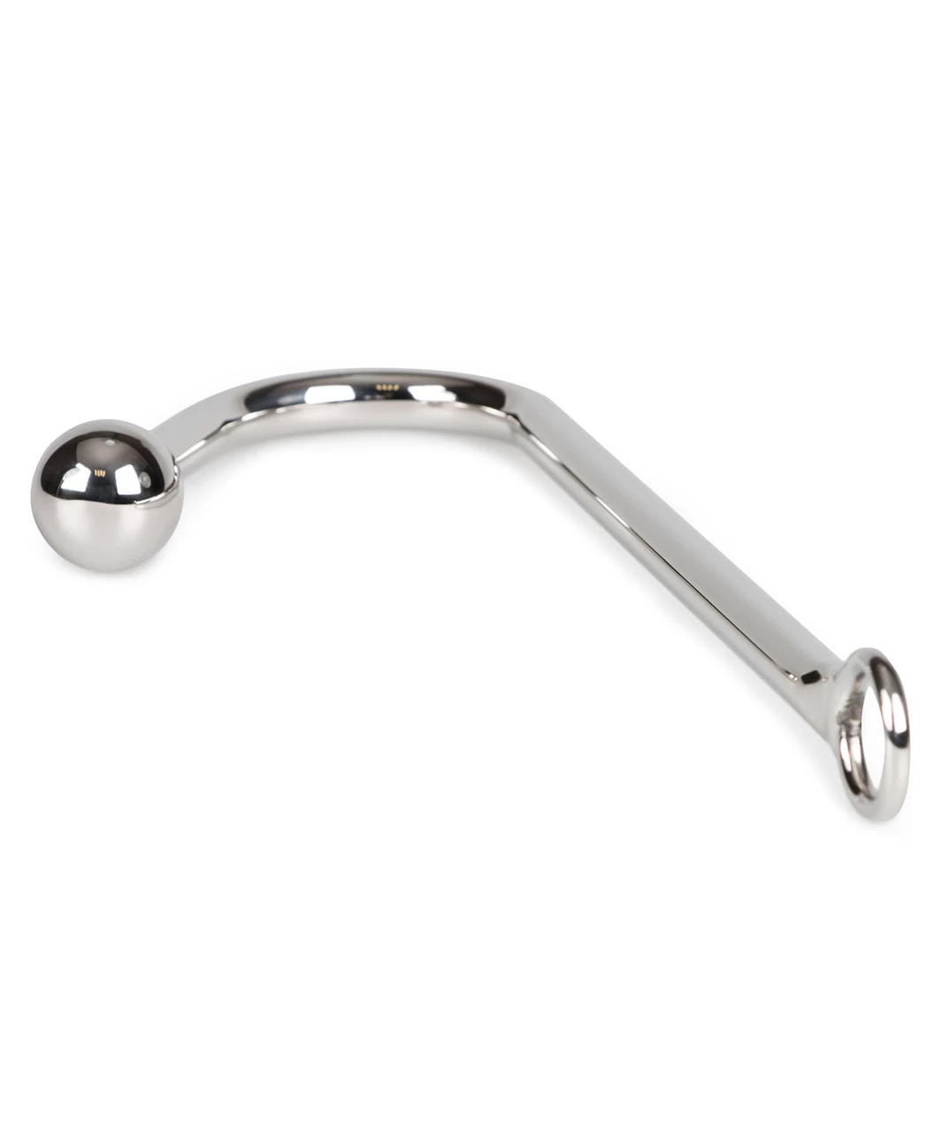 Anal bondage hook for rope play. It’s sturdy construction includes a 3 cm diameter ball on the insertable part and a 3.2 cm diameter ring on the handle.
