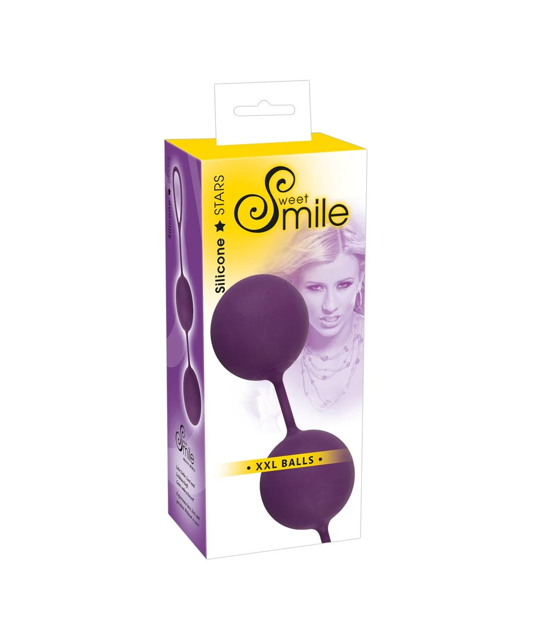 Large and heavy purple love balls made of firm plastic with velvety smooth finish and inner self-rotating balls. Silicone strap with 10 cm long retrieval loop. Recommended only for experienced users of kegel/Ben Wa balls. These balls intended to use just for sensations, not for pelvic floor exercises.