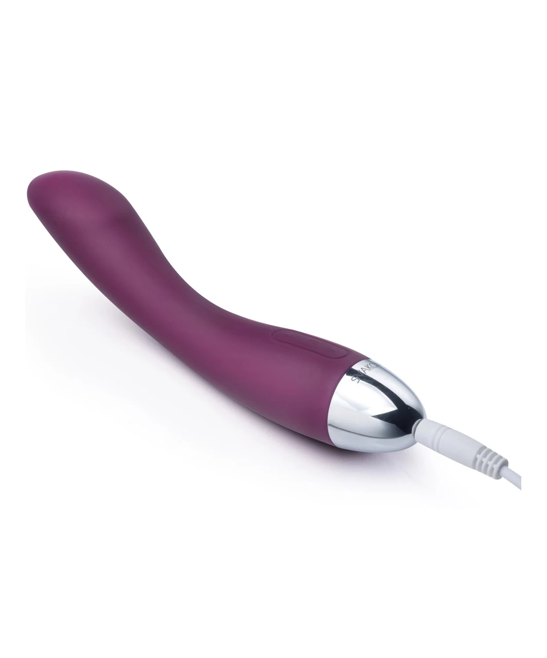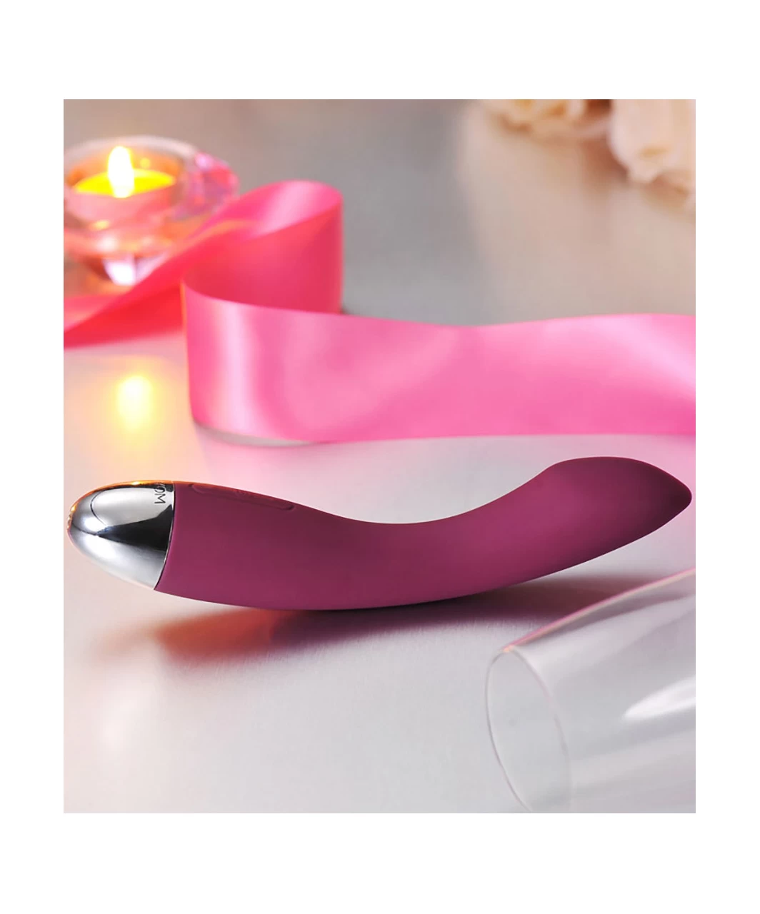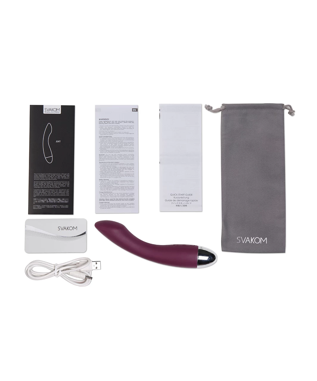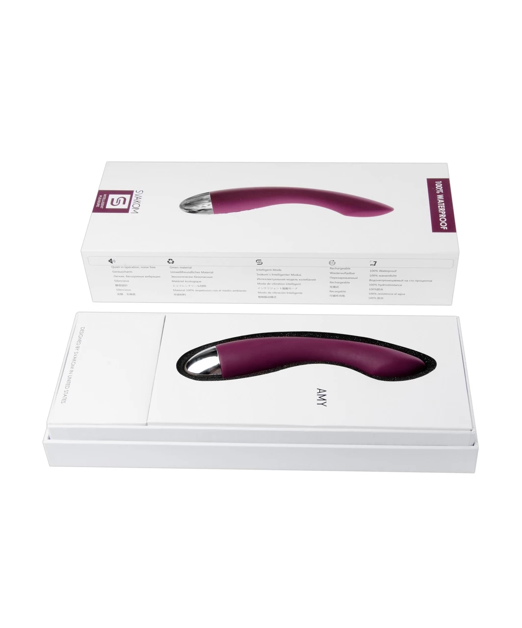 Curved purple vibrator for precise G-spot stimulation, boasts powerful yet very quiet motor (<50 db). Svakom Amy made of silky smooth silicone and suitable for play in the shower or a bathtub. Great for couples play as well as solo play. Intelligent Pleasure mode imitates the whole sex process from the foreplay to climax. Simply press the S key and a wonderful sex journey begins.