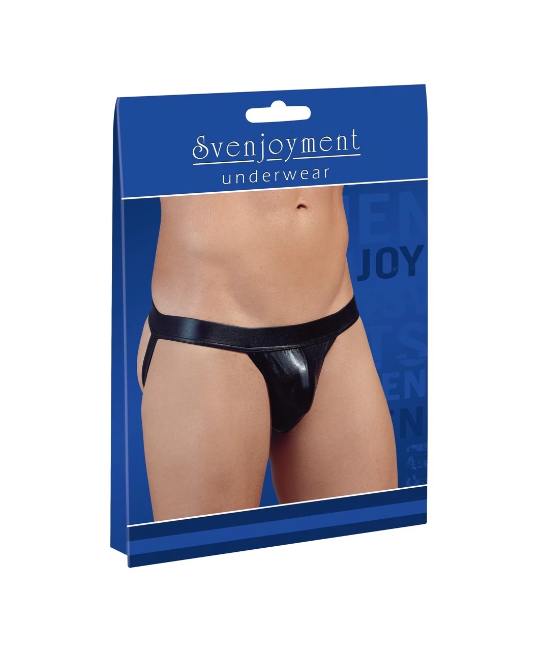 Black wet look jockstrap. Waistband and jockstrap coated.