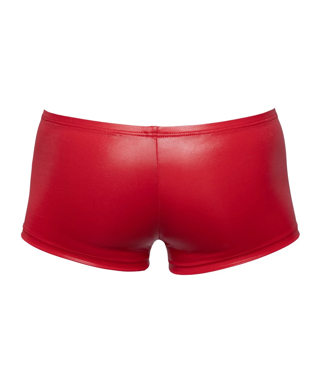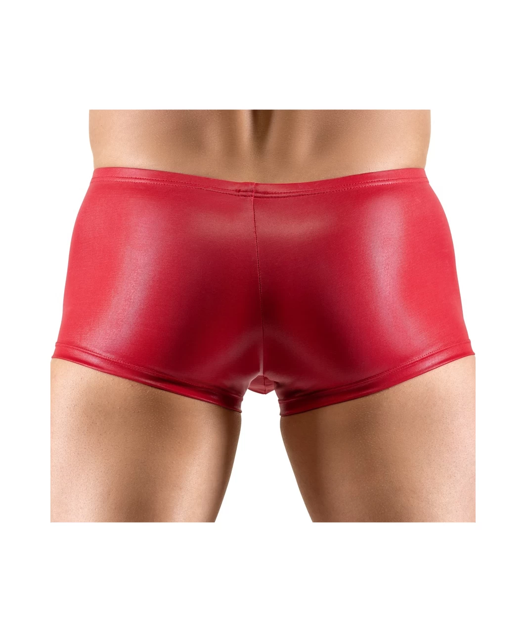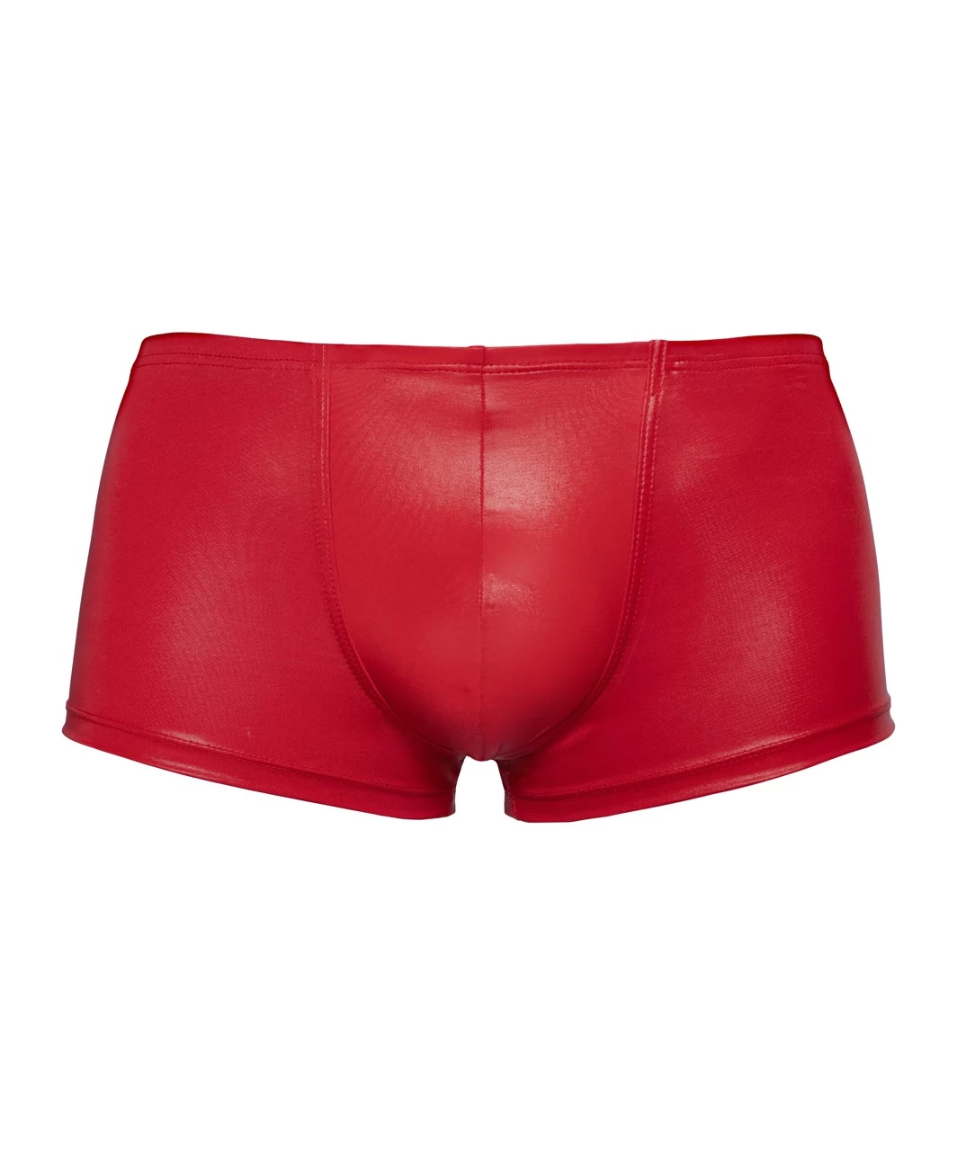 Stretchy and hugging red wet look trunks with seam accentuated pouch for push-up effect.