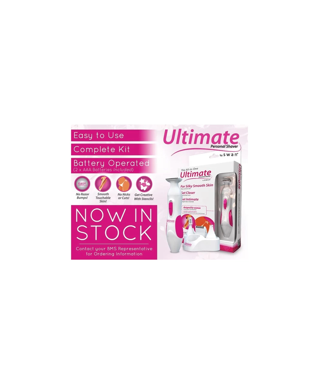 For silky smooth skin with no nicks, cuts, or razor bumps, here is the new Ultimate Personal Shaver by Swan. This bundle includes a precision trimmer attachment for detailed trimming.
