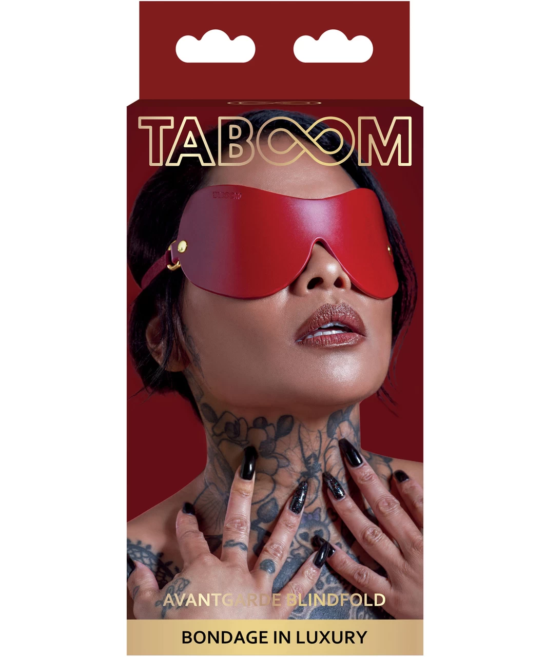 Burgundy leatherette blindfold with adjustable elastic band – a part of exquisite Bondage in Luxury Collection.