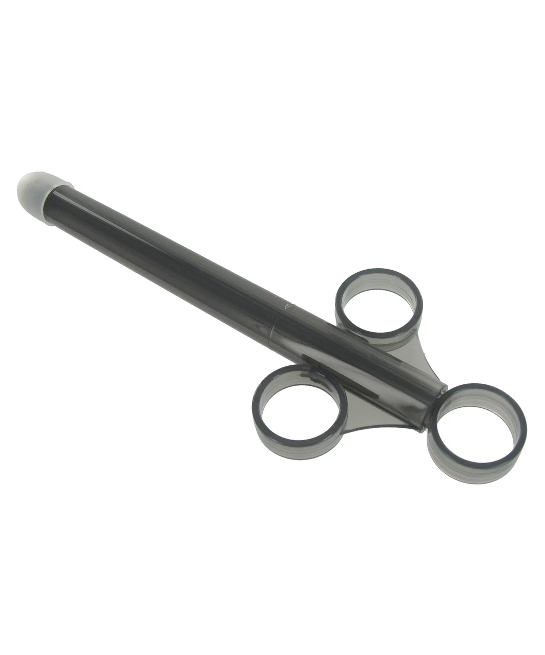 The lubricant launchers narrowed injector makes it easy to ease into anal or vaginal play by lubricating those hard to reach places. The convenient finger grips allow for precise insertion while the casing is easy to clean. With the convenient finger loops you can fill the launcher with whatever liquid you want and inject with one simple thrust. The launcher has a cap to prevent the liquid from spilling until the time is right for application.