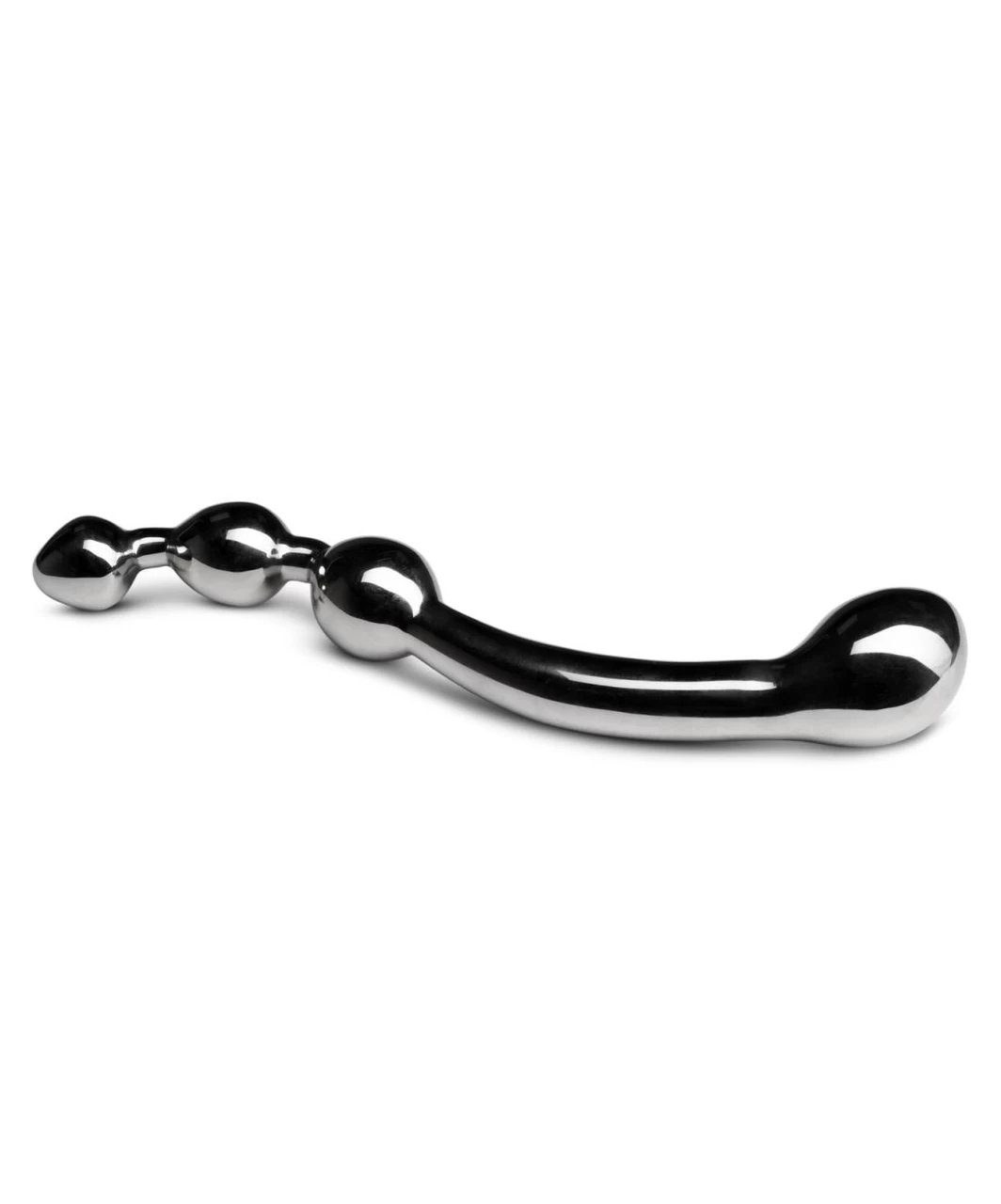 Heavy curved stainless steel dildo. Can be used for vaginal and anal use as it is thinner at one end and thicker at the other end. The thinner side has three beads with different diameters for extra pleasurable stimulation. For a full range of sensations cool the dildo in cold water or in the refrigerator for ≈ 2-3 min., or warm it up in warm water.