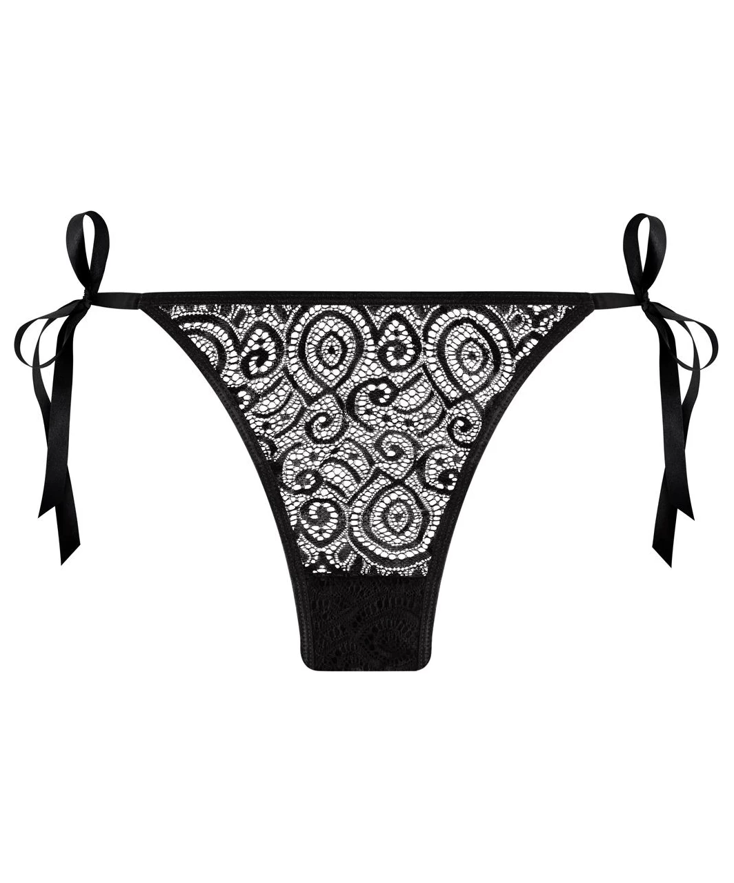 Seductive black tie-side thong made of delicate soft lace. Unisize (S–L).