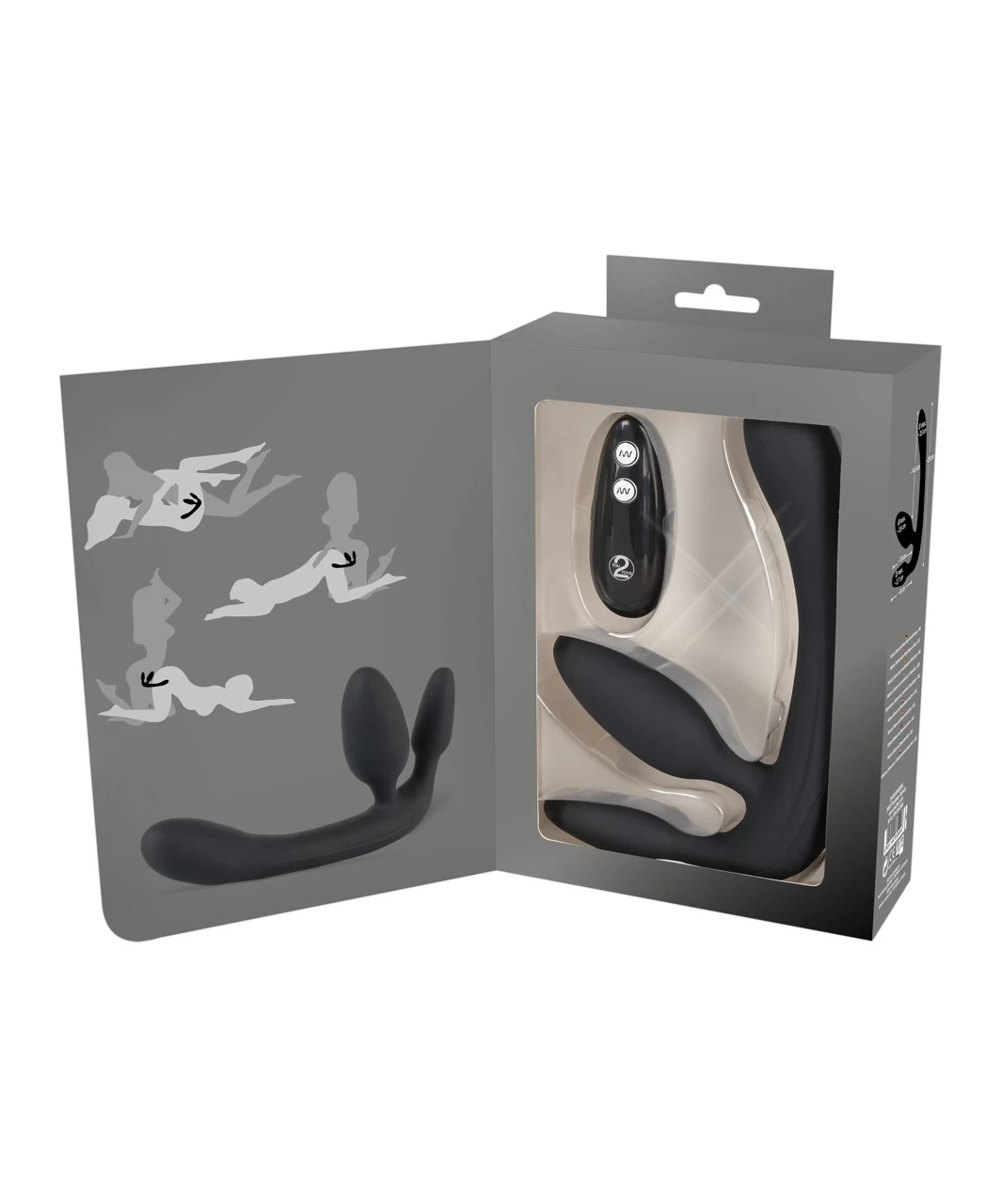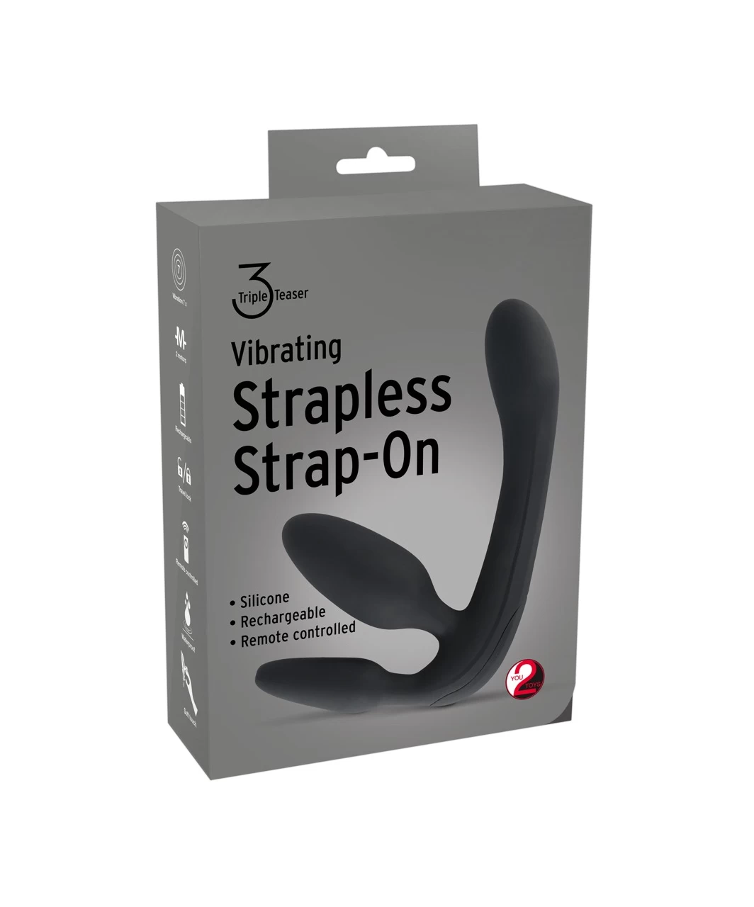 Black strapless vibrating strap-on for couples fun – provides double penetration for HER as she wears it while giving a pleasure for her lover. Two motors with 7 vibration modes can be controlled easily with the wireless remote control. Can also be used in the bathtub or shower since the toy is completely waterproof. It also has a travel lock. The vibrator can be recharged with the included USB cable. Charging time approx. 2 hrs, battery run time up to 2 hrs.