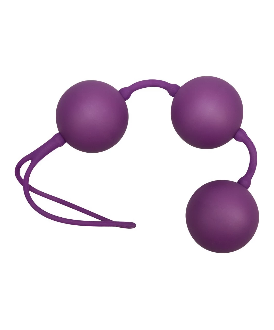 Purple love balls made of firm plastic with velvety smooth finish and inner self-rotating balls. Silicone strap with 10 cm long retrieval loop. These balls intended to use just for sensations, not for pelvic floor exercises.