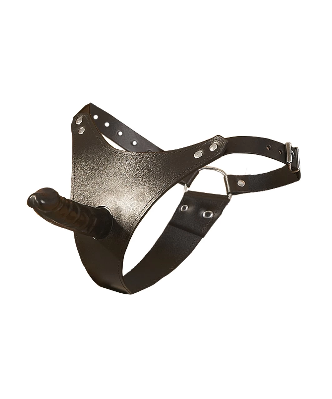 Adjustable briefs. Firmly attached, natural look latex dildo. 15 cm long. Ø 3 cm.